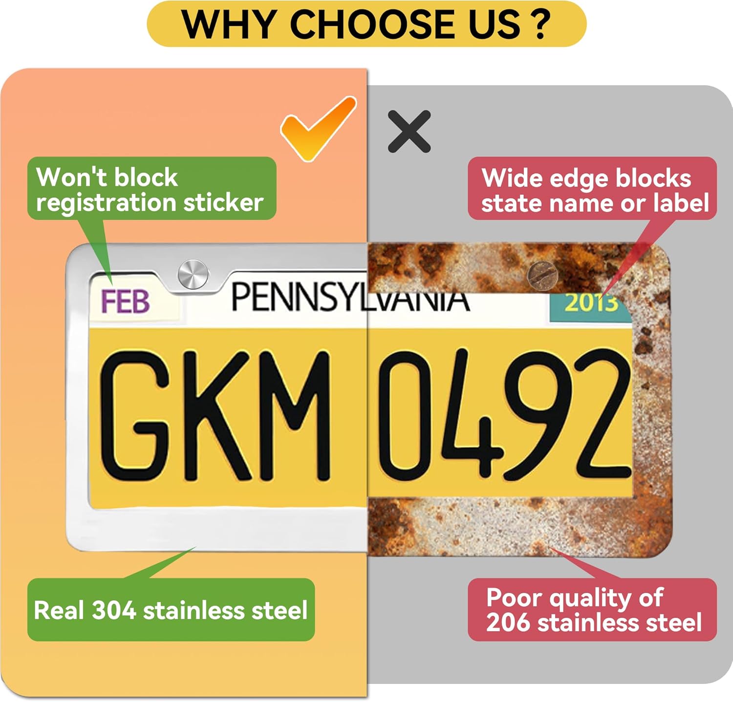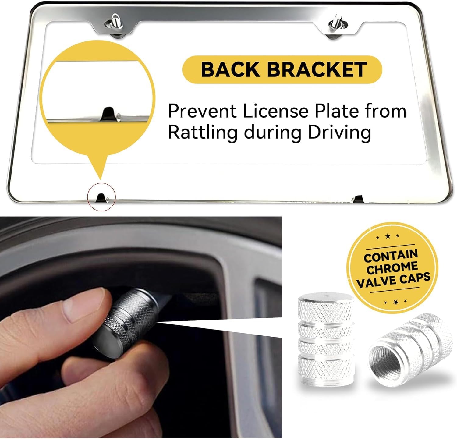 - Anti Scratch & Rattle Proof: The frame is designed with rounded corners to ensure it won't scratch paint. 2 holders are designed on the back of the frame to prevent plate from rattle during driving