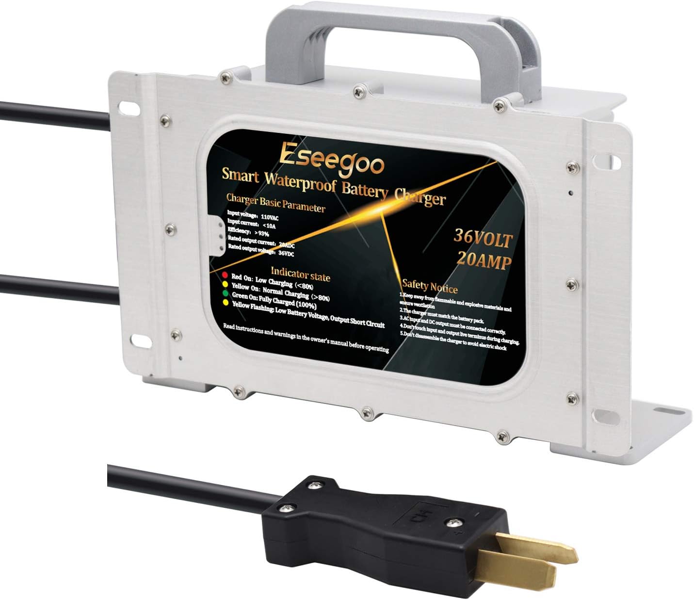 20AMP Battery Charger Replacement for 36 Volt Club Car/Yamaha Golf Cart Waterproof IP68 with Crowsfoot Plug