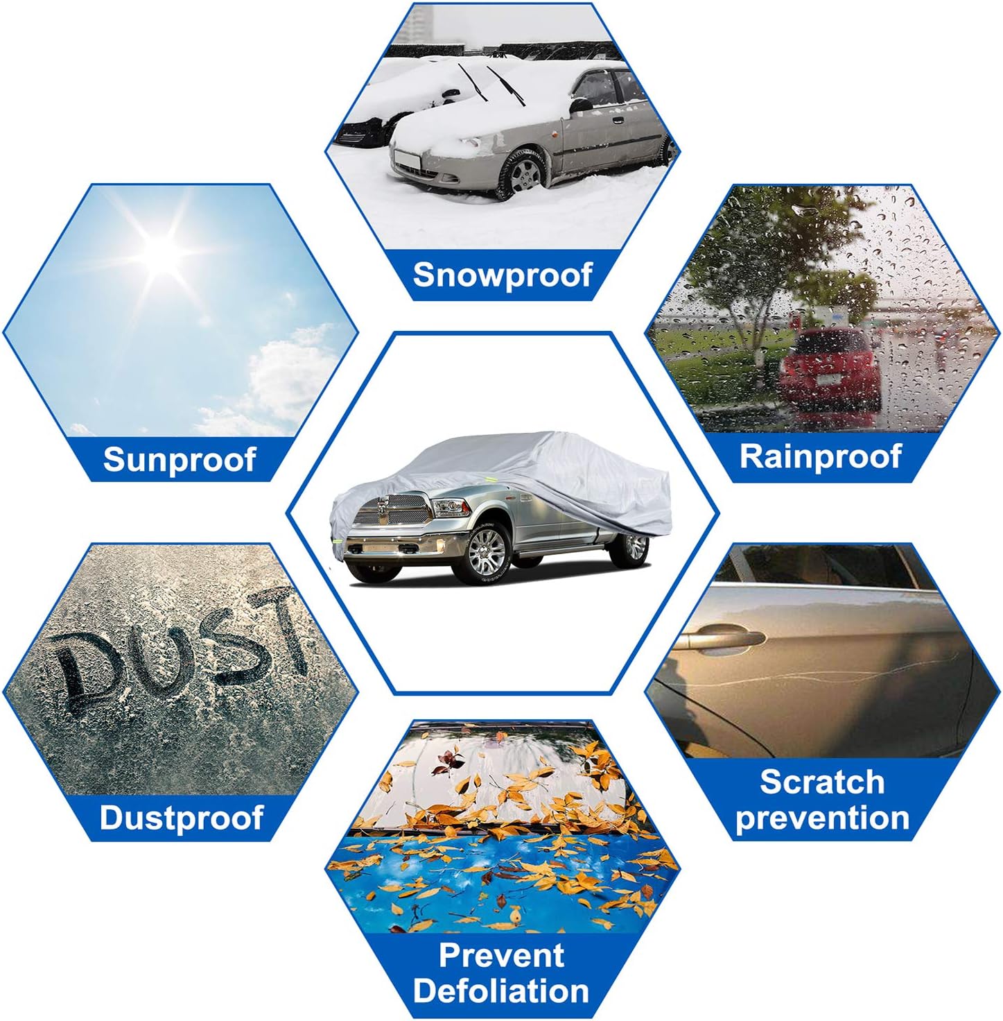KouKou Truck Cover Waterproof All Weather, 6 Layers Full Pickup Cover Universal Fit Truck Ford 150,Ram 1500,Chevy Silverado,Toyota Tundra ect.(229-242 inches)
