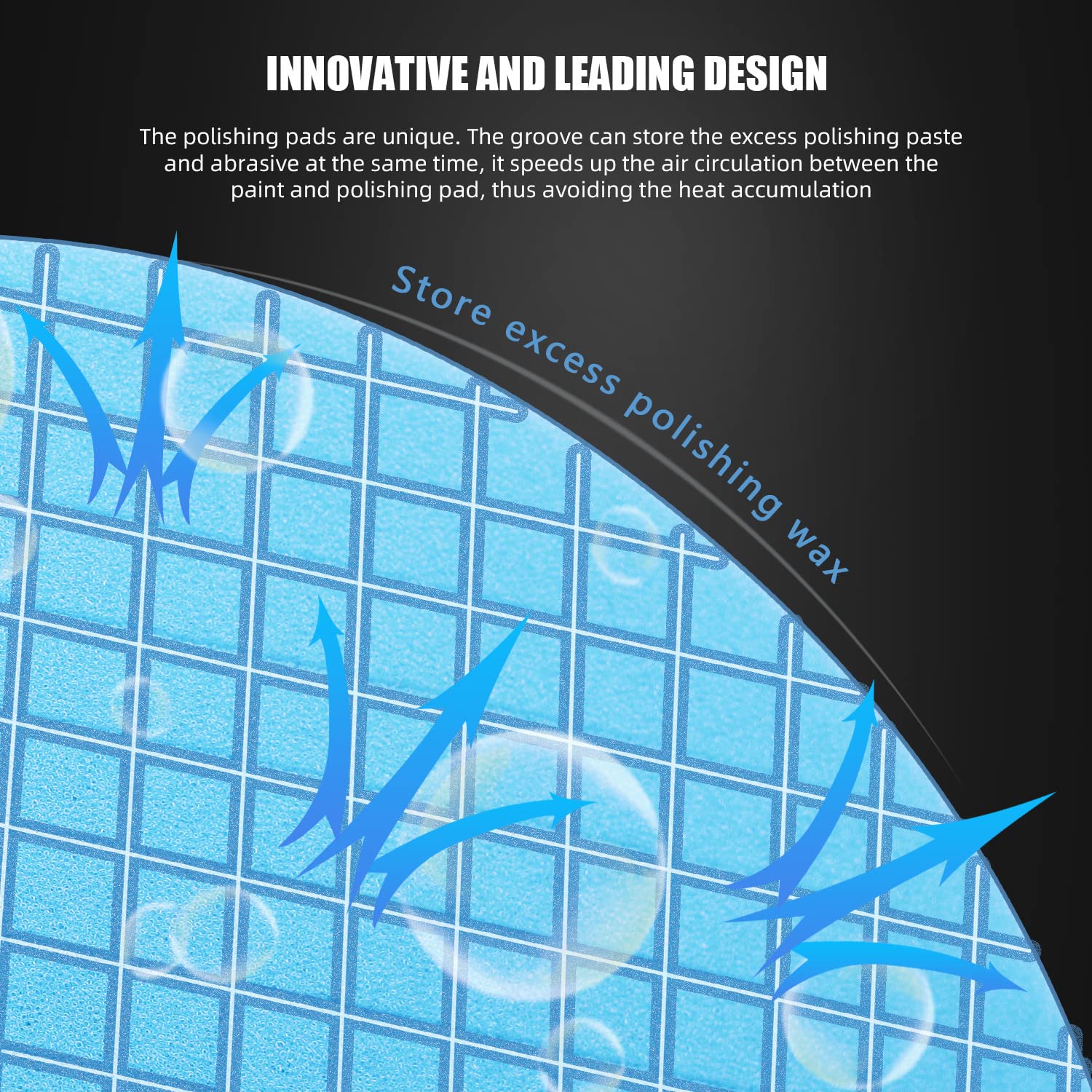 - 3 inches Polishing Pads, package included 5pcs sponge pads, 1pc wool buffer, 1pc white microfiber pad, 1pc gray microfiber pad and 1pc threaded drill adapter which meet lots of polishing needs.