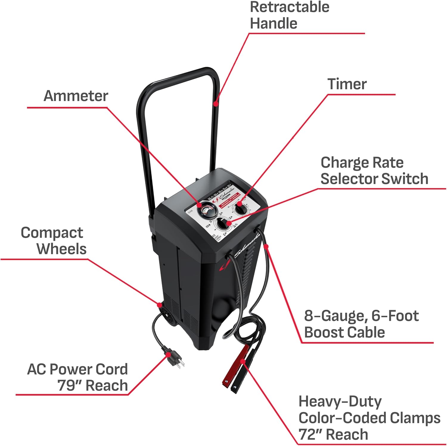 - Complete Package - Includes (1) SC1446 Manual Timer-Controlled Wheeled Battery Charger and Engine Starter, (1) user manual