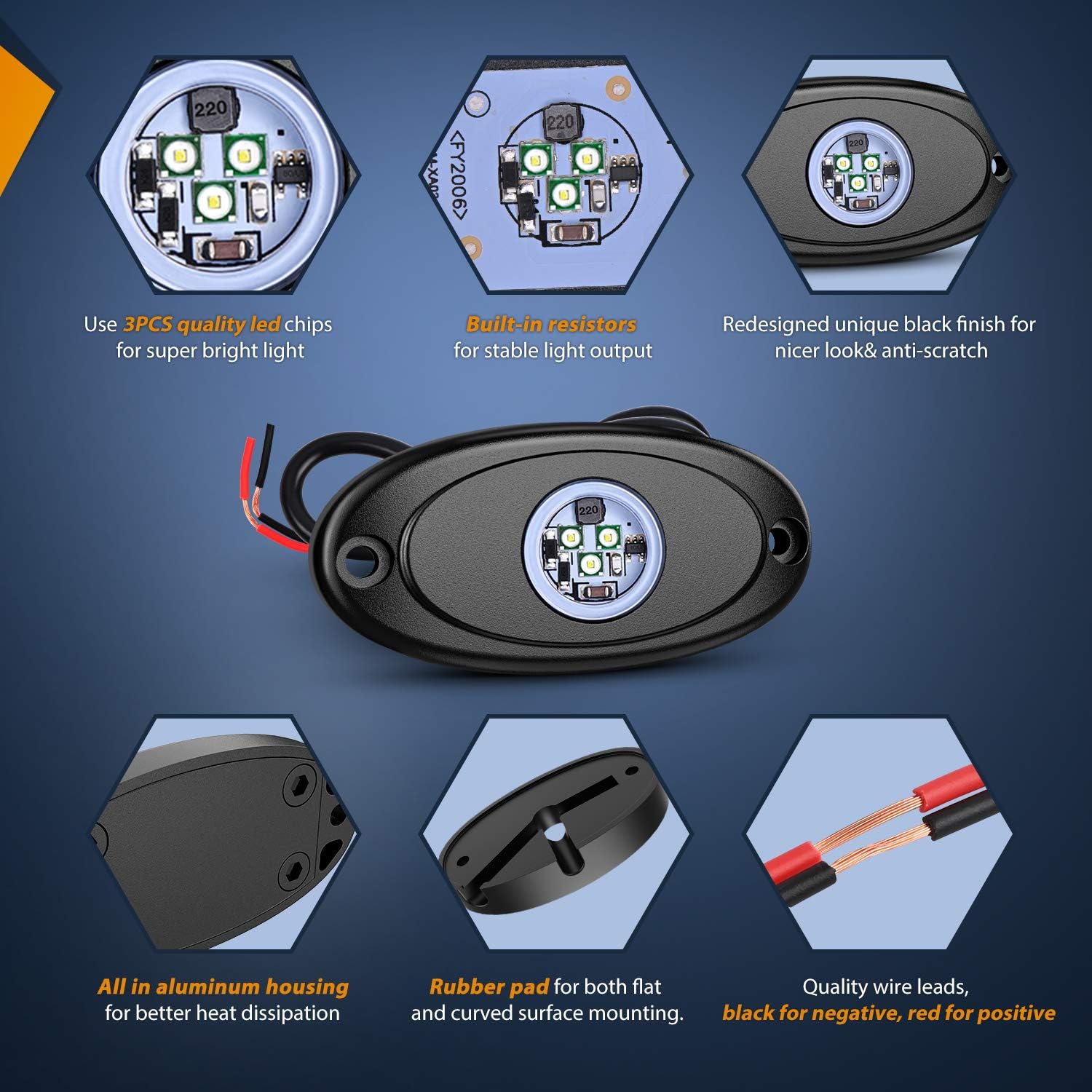 - Included Components : 4PCS LED Rock Light
