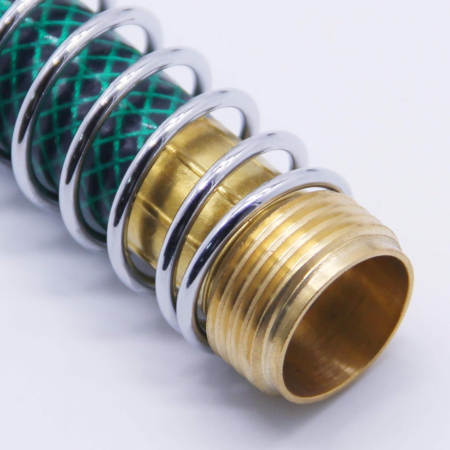 - MATERIAL: This garden hose extension is made of solid brass, stainless steel ring, PVC hose, solid and sturdy, corrosion proof and has a long service time.
