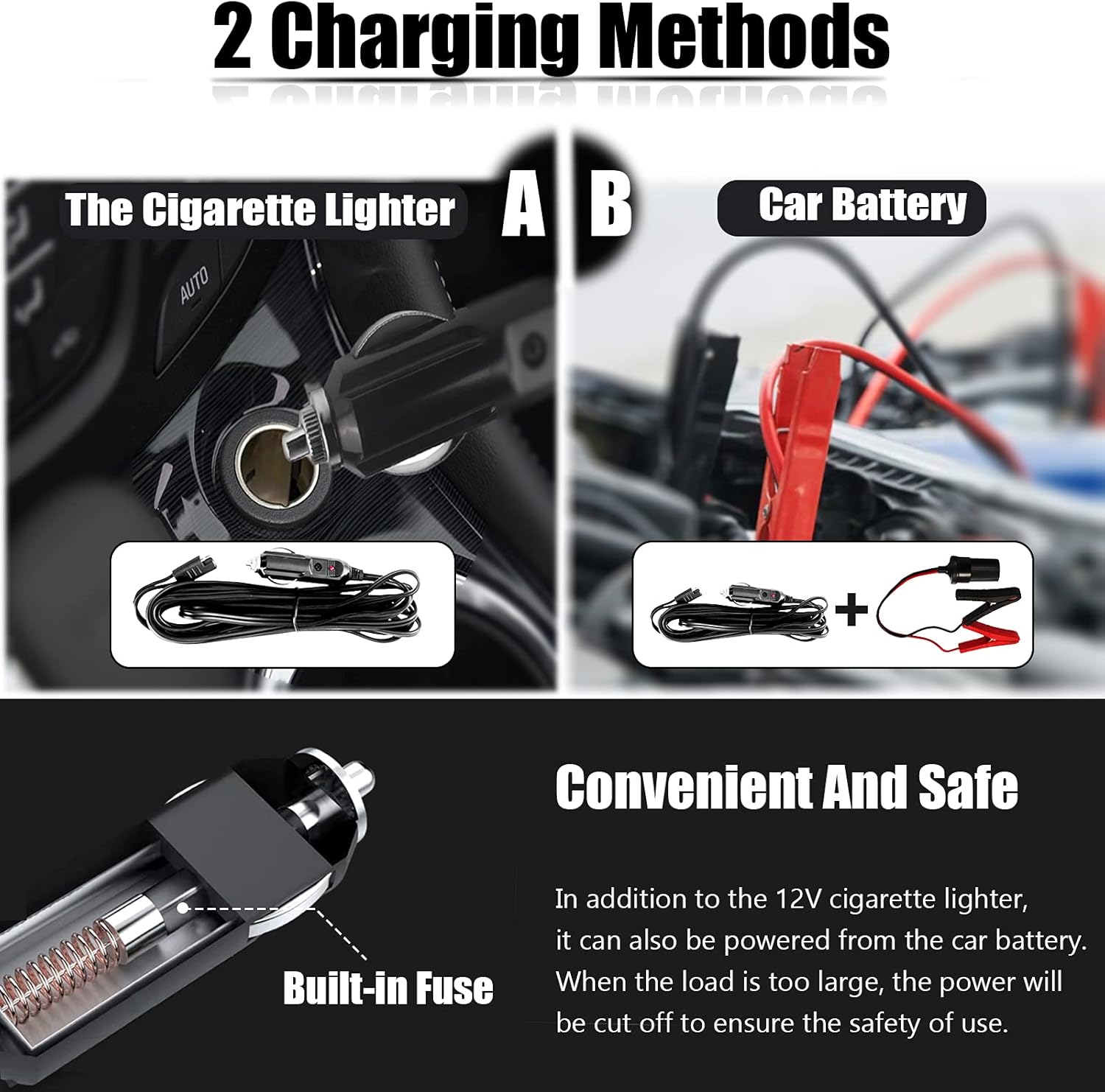 - Easy to Get Power Source: Electric jacks have two sources of electricity: 𝐜𝐚𝐫 𝐛𝐚𝐭𝐭𝐞𝐫𝐲 or 𝐜𝐢𝐠𝐚𝐫𝐞𝐭𝐭𝐞 𝐥𝐢𝐠𝐡𝐭𝐞𝐫, which allows people to change and repair tires at any time on the garage/highway. The built-in LED light of car jack provide brightness for people to easily change tires in dark conditions. The electric hydraulic jack adopts a fully enclosed design, which is completely waterproof and does not leak oil