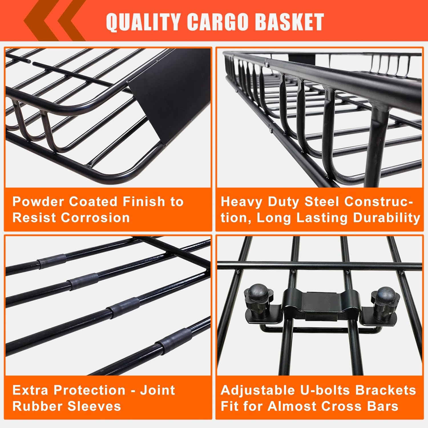 - EASY ASSEMBLY- Easy to assemble and install on your vehicles cross bars, mounting with four universal U-bolts. Distance adjustable cross bars are recommended.