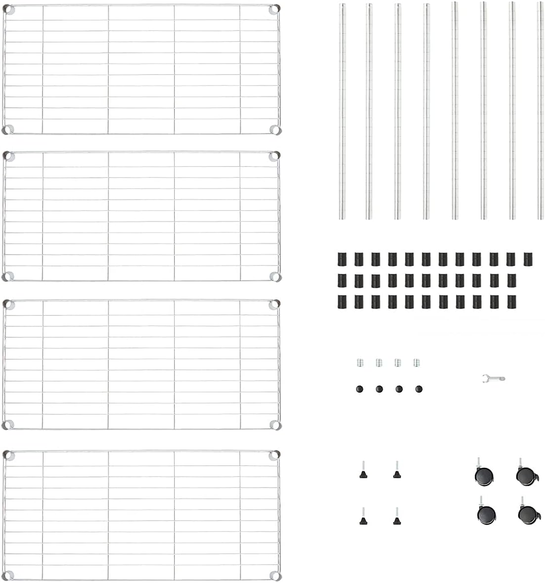 Heavy Duty 4 Tier Wire Shelving Unit Storage Rack, Metal Shelves Utility Organizers, Organization Units for Products, Plant, Pantry, Garage, Laundry Durable Shelf Stand, Chrome, 14"W x 30"L X 48"H