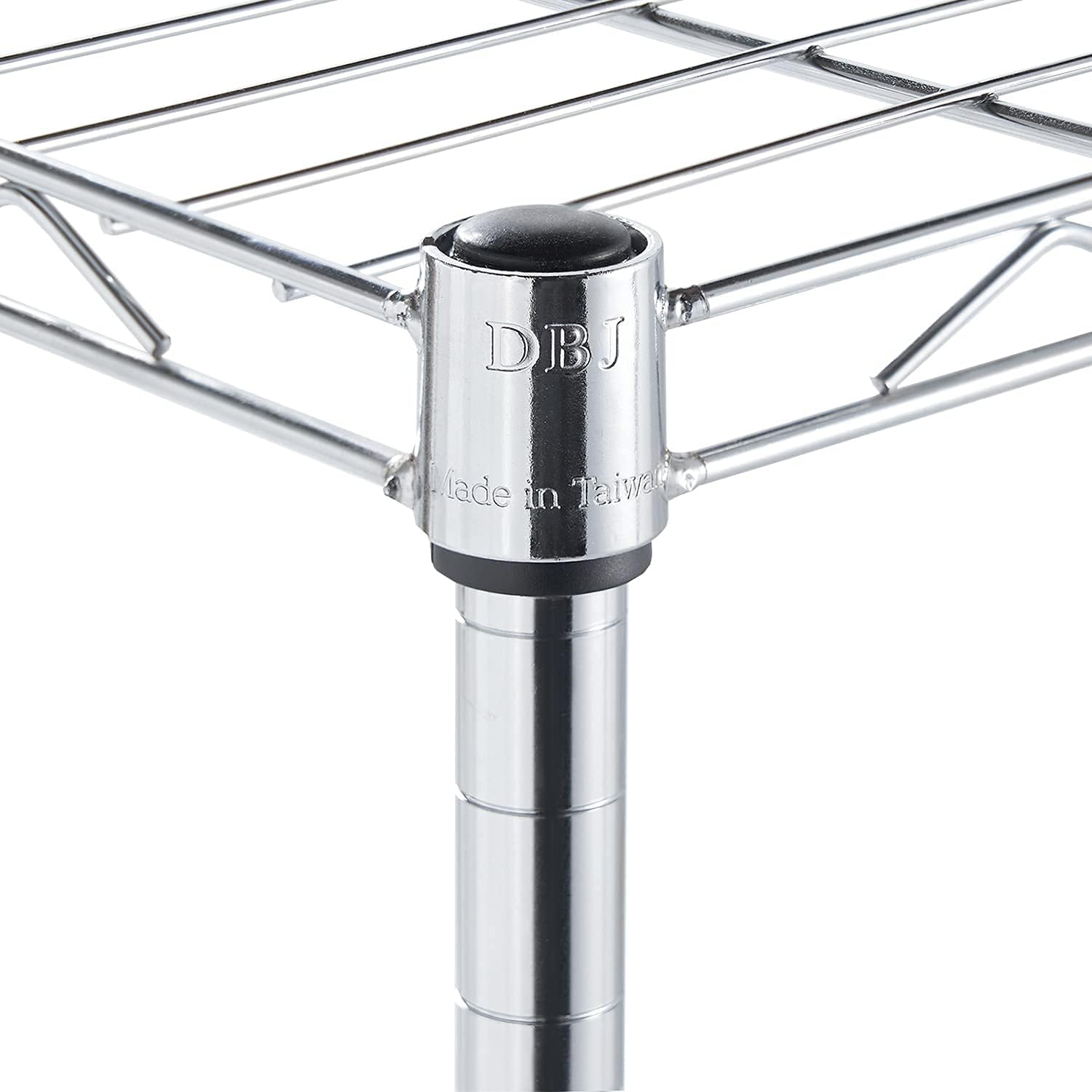 - DBJ's wire rack bakers rack shelf units can reliably hold up to 250 pounds each shelves for storage that has 1000 lbs., total capacity when used with leveling feet.