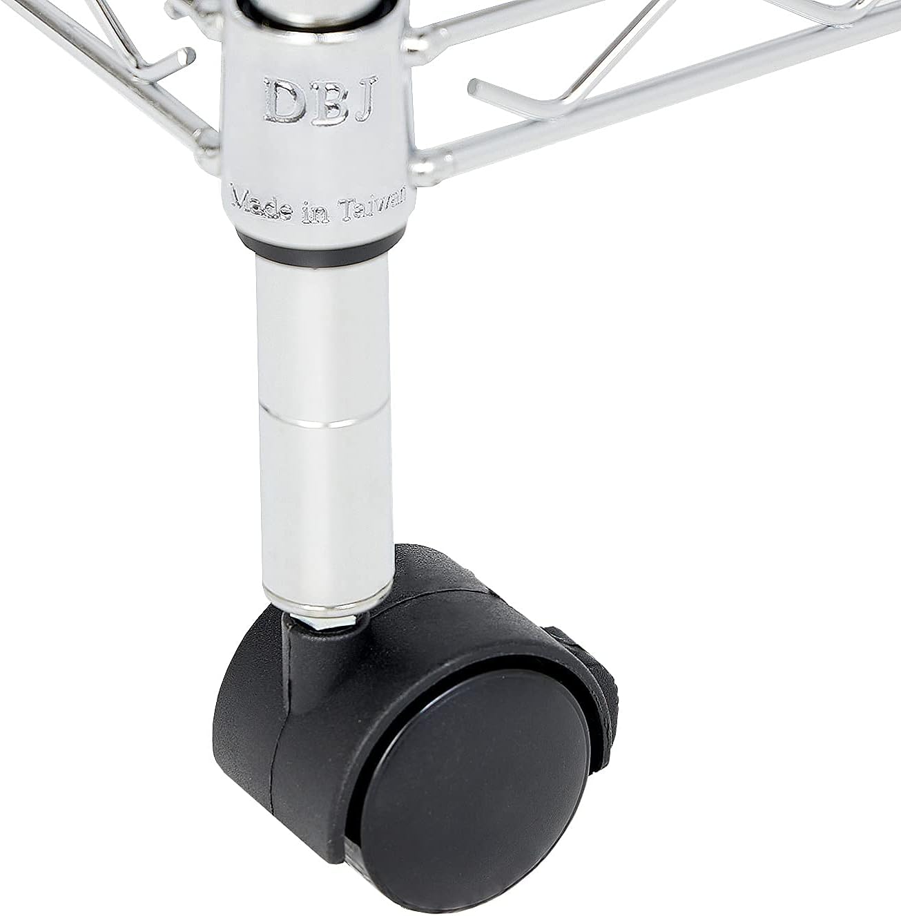 - Displays by Jack's metal shelves 4 tier wire shelving units include 4 nylon casters wheels (2 Locking) for easy mobility as well as 4 wide leveling feet.