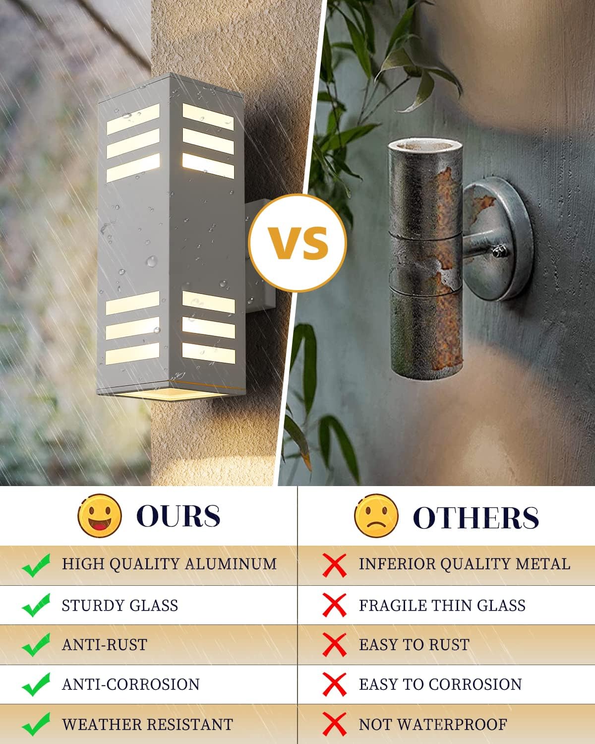 - Rustproof and Weather Resistance: The outdoor garage lights crafted from thickened aluminum, ensuring robustness, durability, and longevity in outdoor environments. Effectively prevent rust, more durable than ordinary metal wall lights