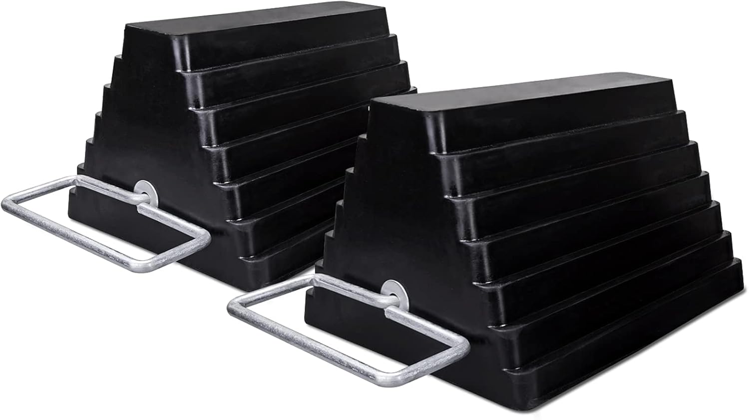 - Versatility: The triangular design makes the chock stably fix the tires. Compatible with trucks, cars, RVs, campers, boats, small airplanes, trailers, vans. When you are playing outdoors or parking, don't worry about the rolling of the vehicle. And it has reliable performance in any environment and climate