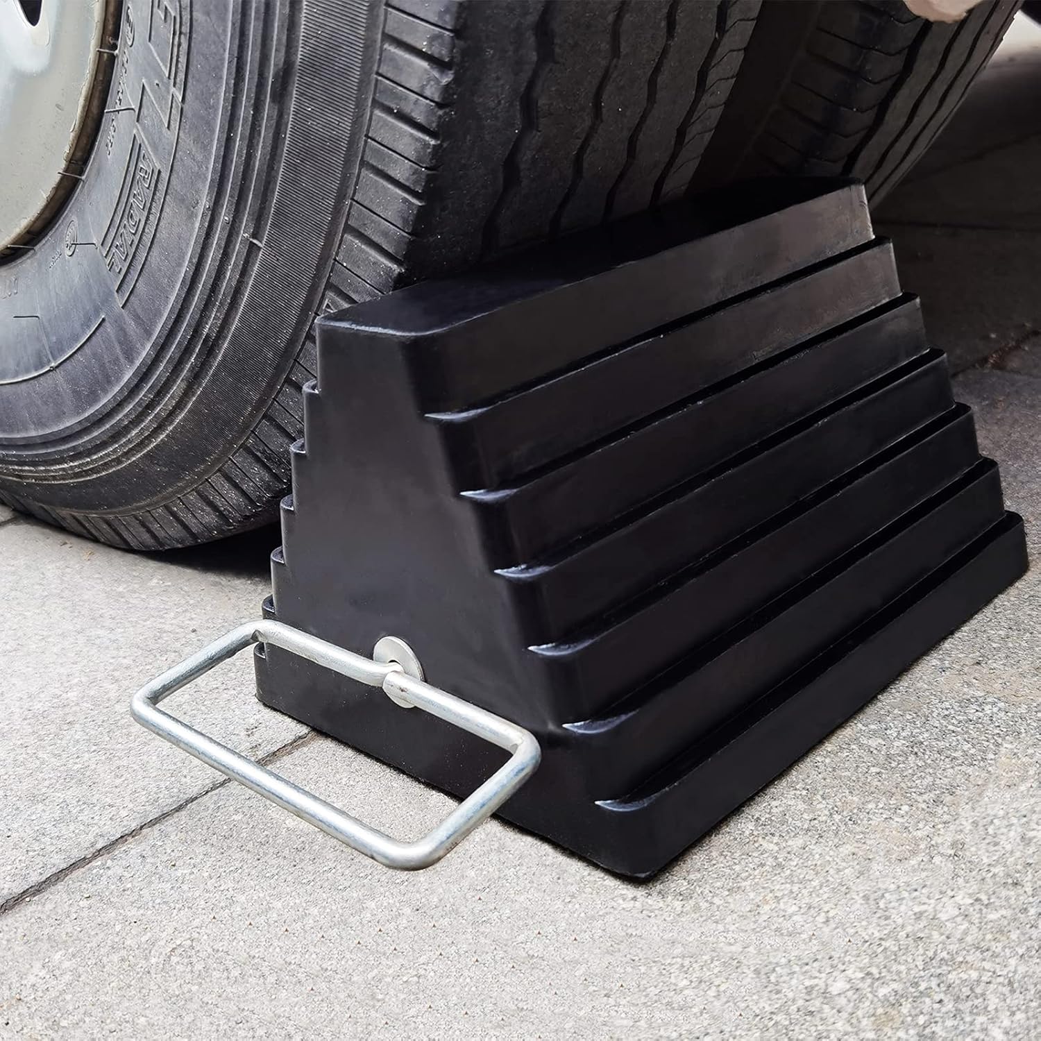 - Durable Rubber: Wheel chocks are made of premium rubber. Compared with plastic chock, our blocks has the characteristics of UV resistance, oil resistance and more robustness. The special material can carry a large weight and is durable.