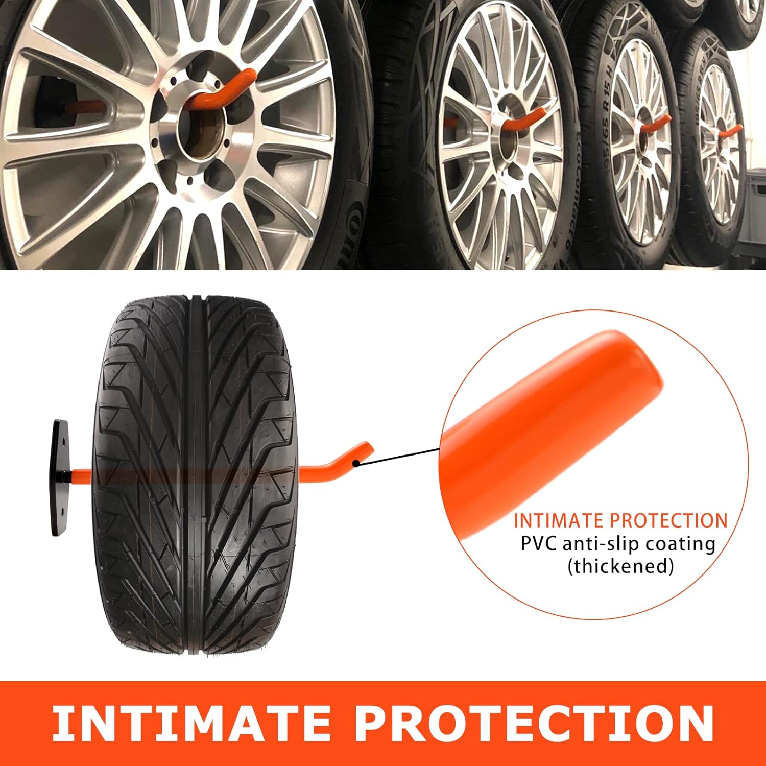 4 PCS Garage Hooks Heavy Duty Wall Mount, Tire Storage System with Anti-Slip Coating, Hang Heavy Tools for up to 88Lbs, for Bikes, Ladders, Chairs and Bulky Tools