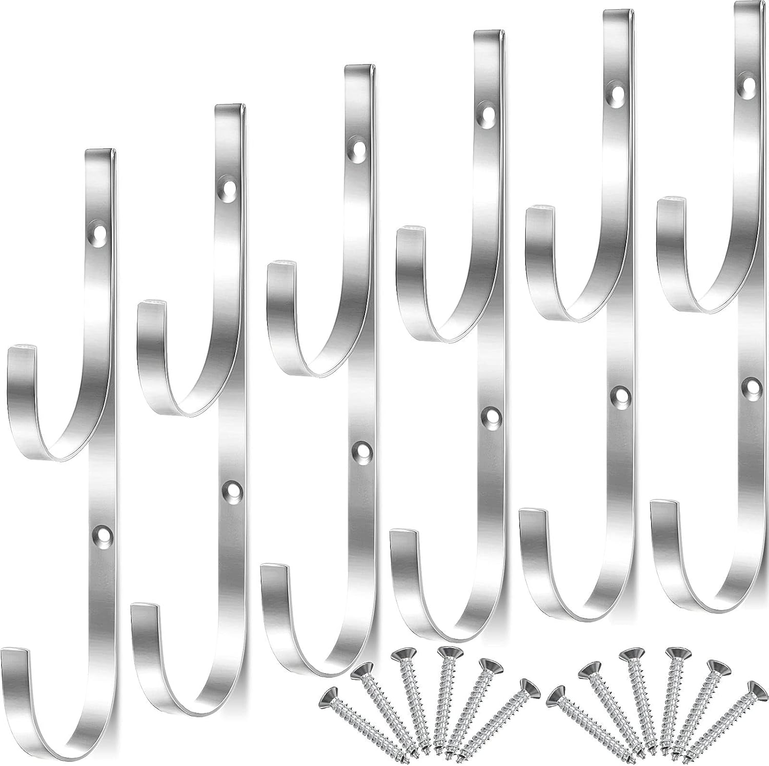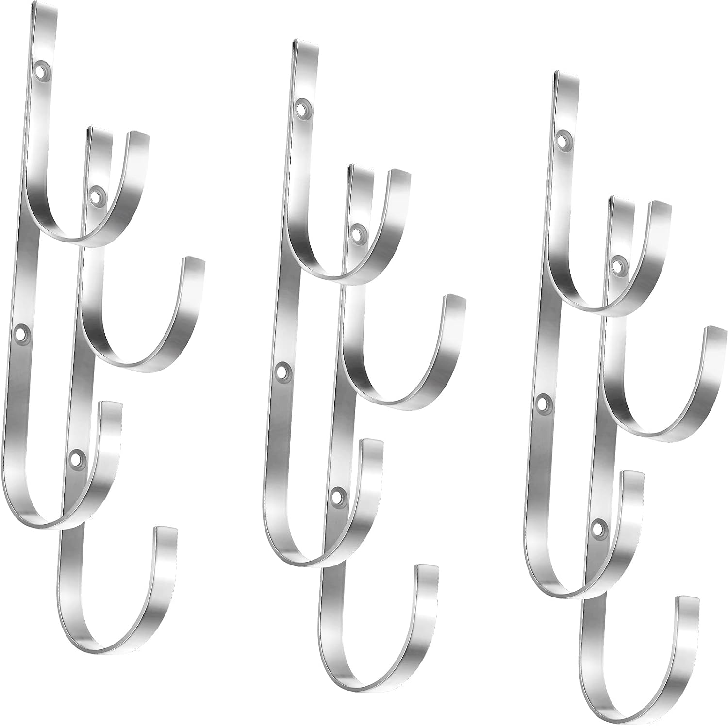 6 Pieces Pool Pole Hook Hanger Swimming Metal Brackets Pool Hook with 12 Pieces Screws for Telescopic Poles, Skimmers, Leaf Rakes, Net, Brush, Vacuum Hose, Garden and Pool Accessories (Silver)