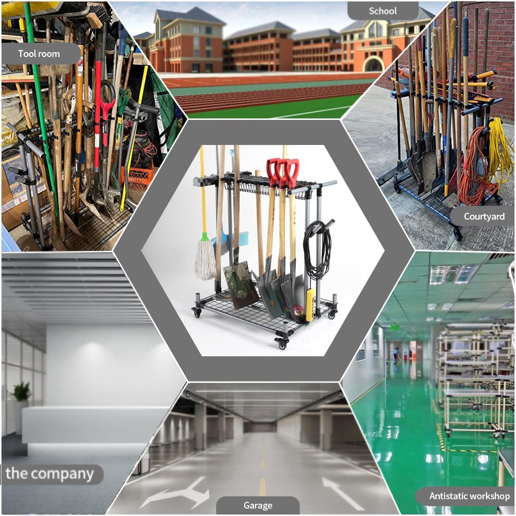 Mobile garden tool organizer metal Garage Storage Holder storage large long lawn tools heavy duty tool rack sturdy yard cart