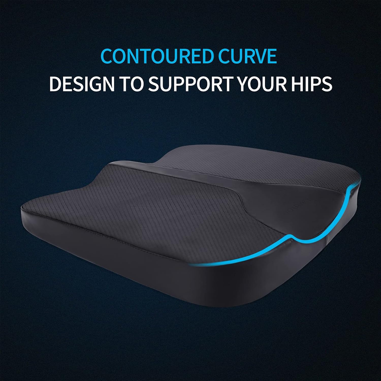 Car Seat Cushion - Comfort Memory Foam Seat Cushion for Car Seat Driver, Tailbone (Coccyx) Pain Relief Pad, Car Seat Cushions for Driving, Office Chair Cushion (Black)