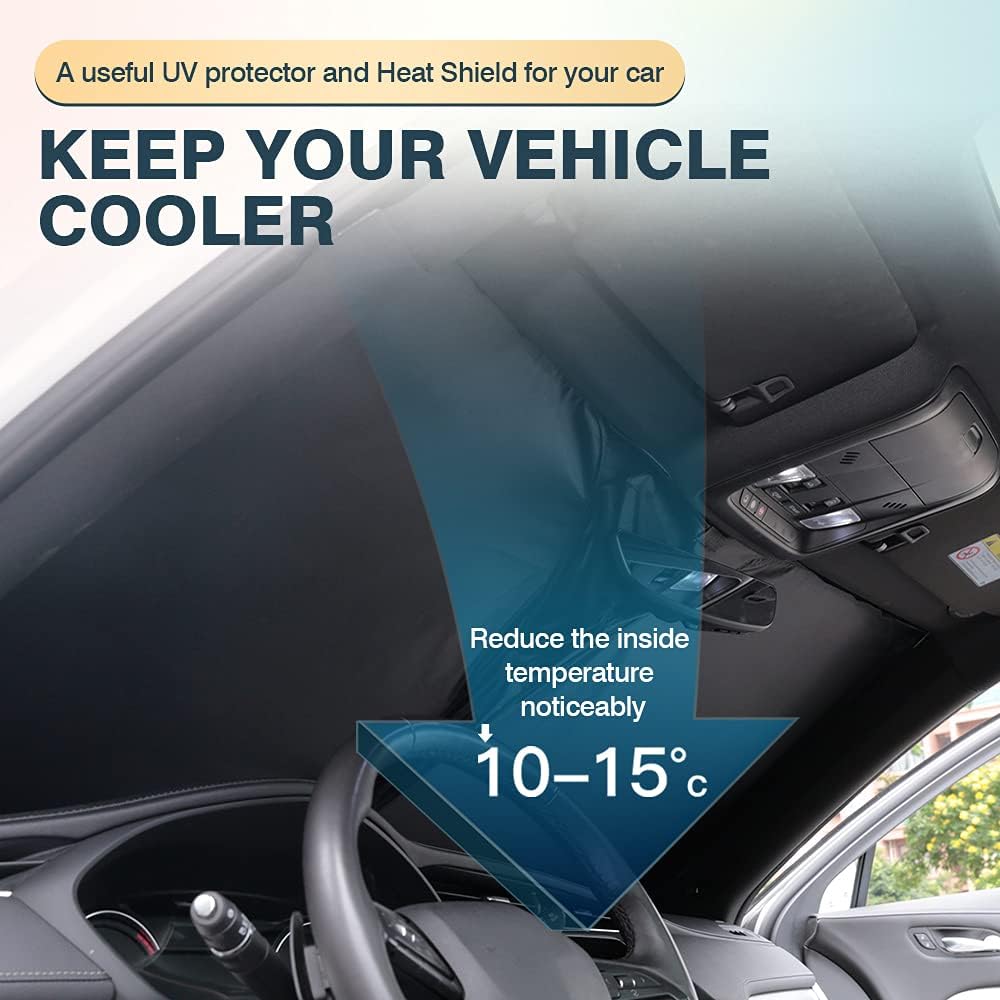 - Highly Reflective Protection -- The Sorento windshield sun shade will provide maximum protection for your car interior by blocking 99% of UV rays and sunlight. Not only protect the dashboard from fading and cracking, but also protect people skin by blocking the harmful UVA. Offering you a cool environment by lower the temperature by 50-59°F.