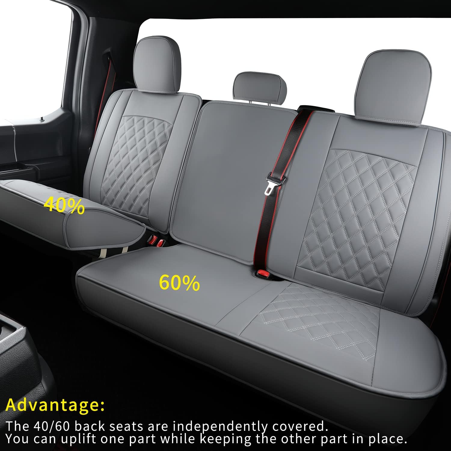 - TAILOR-MADE FOR 60/40 SPLIT BENCH - The 40/60 back seats are independently covered. You can uplift one part while keeping the other part in place. Never fall apart when its folded up. It also won't fall apart when someone sits on it.
