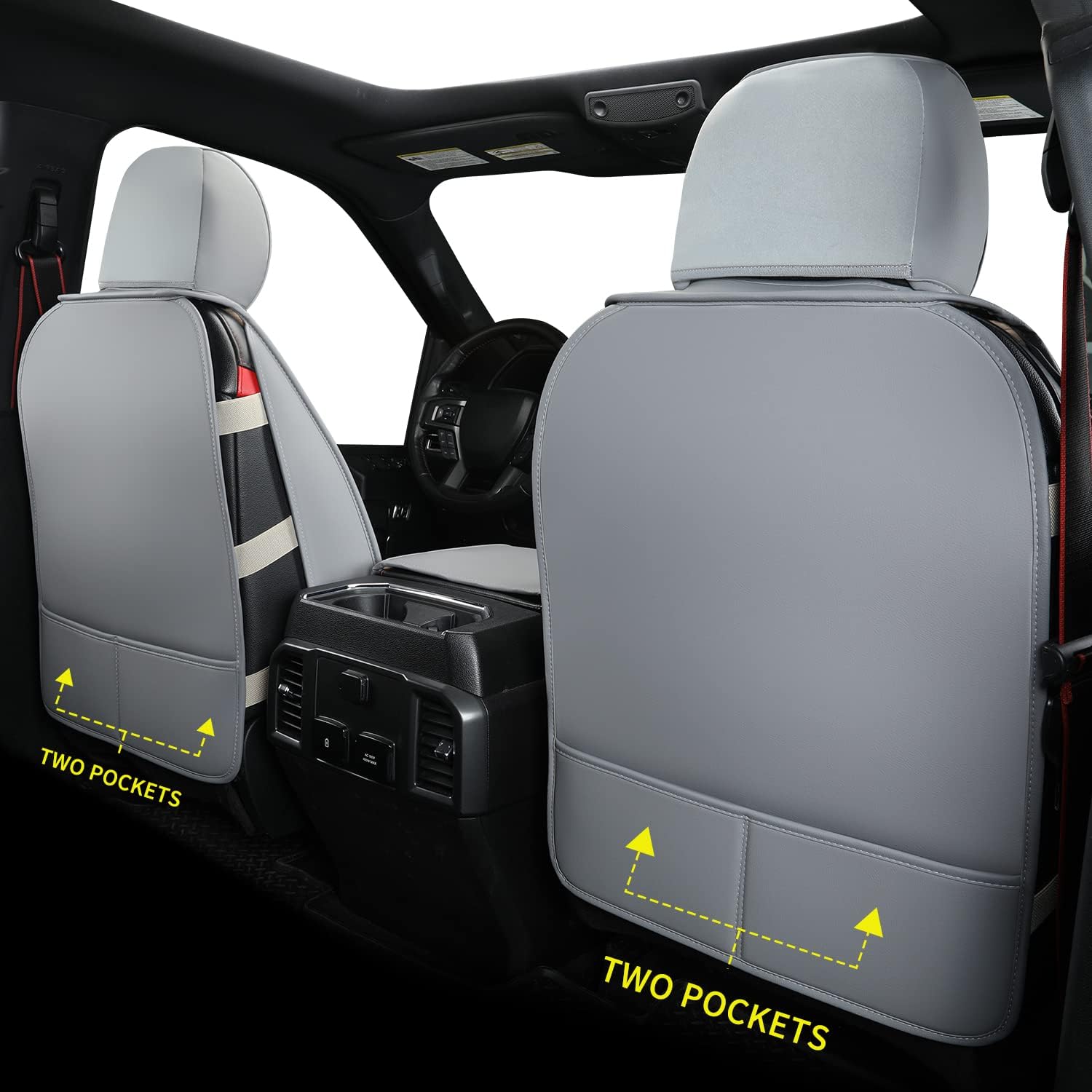 LUCKYMAN CLUB F150 Faux Leather Seat Covers Fit for 2015-2025 F150 and 2017-2025 F250 F350 F450 Pickup Trucks(Full Set, Gray)