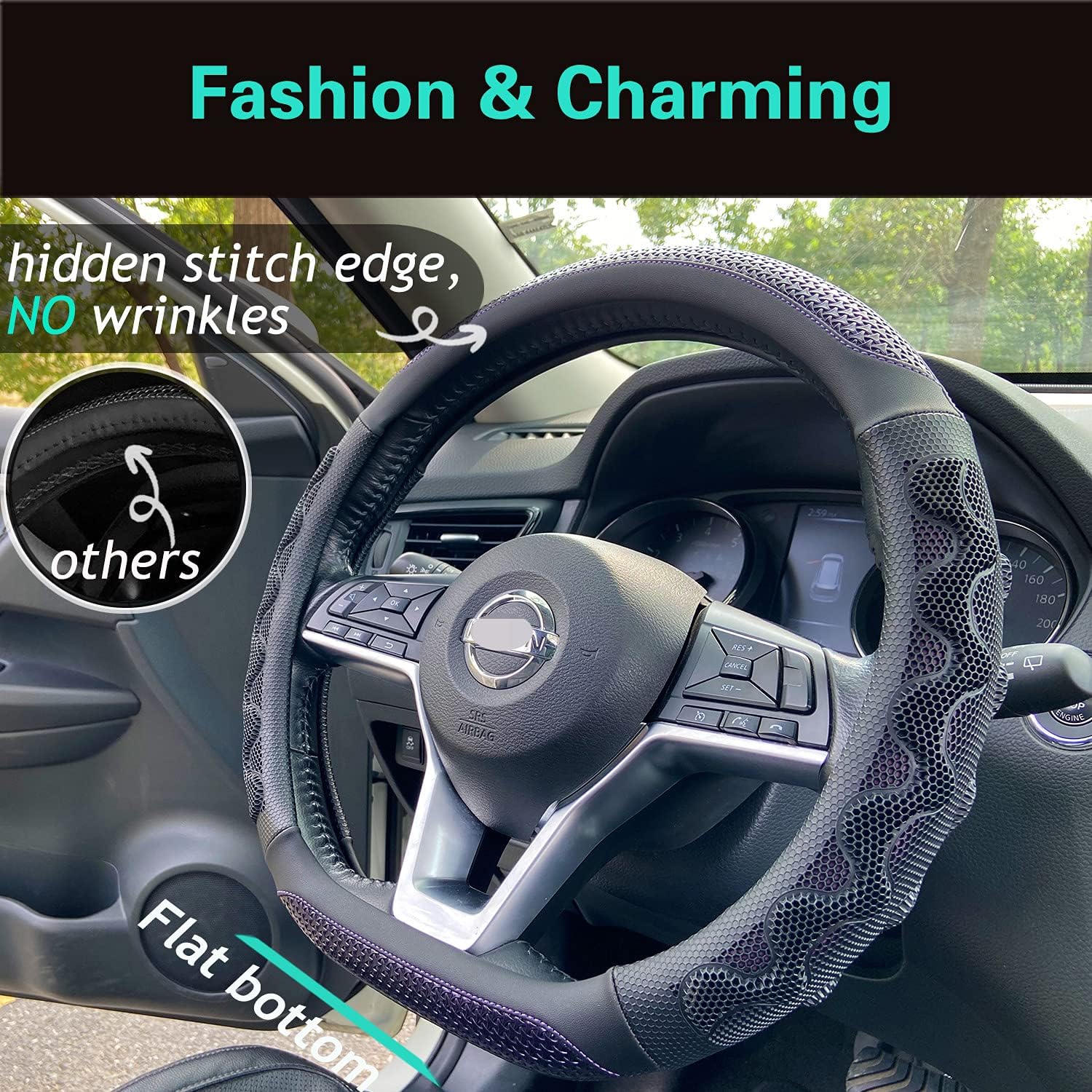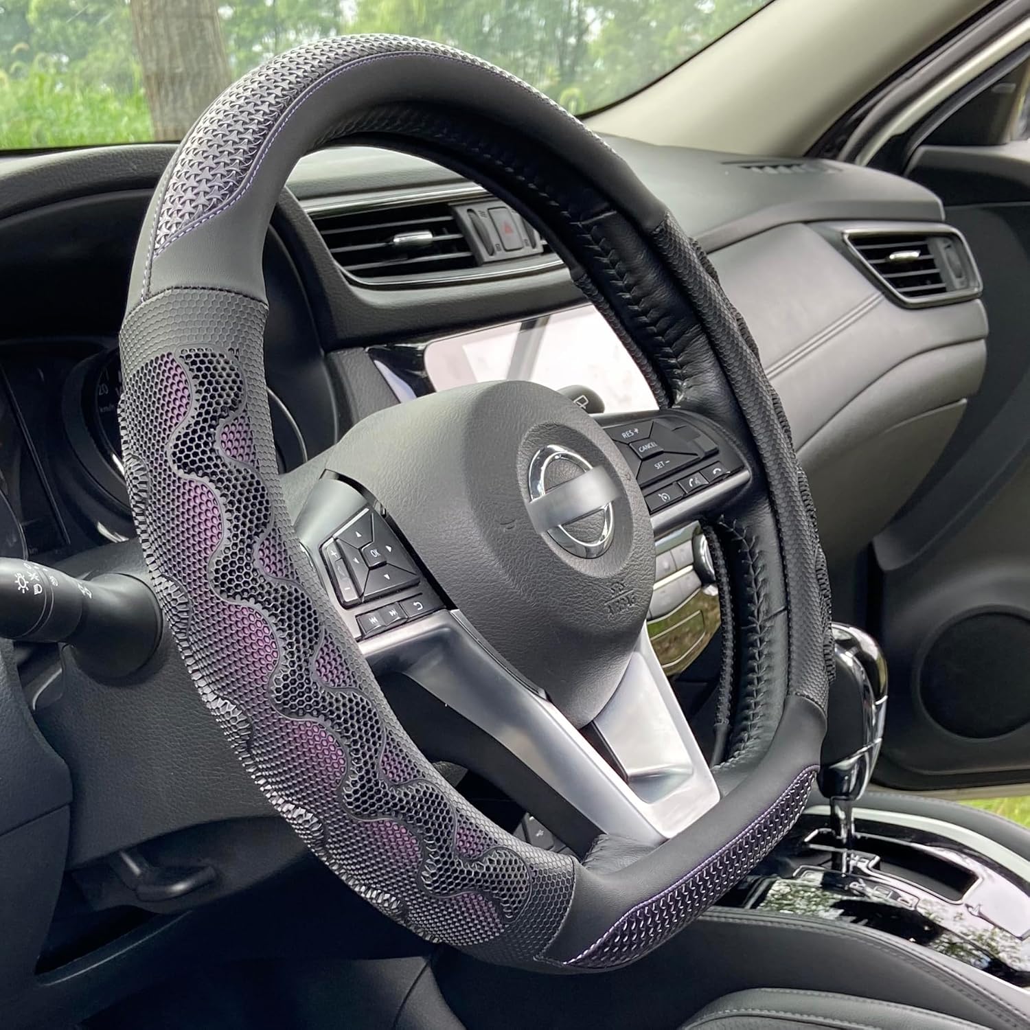 PINCTROT D Shaped 14.5-15 Inch Steering Wheel Cover Great Grip with 3D Honeycomb Anti-Slip Design, Flat Bottom 14.5-15 Inch (Purple)