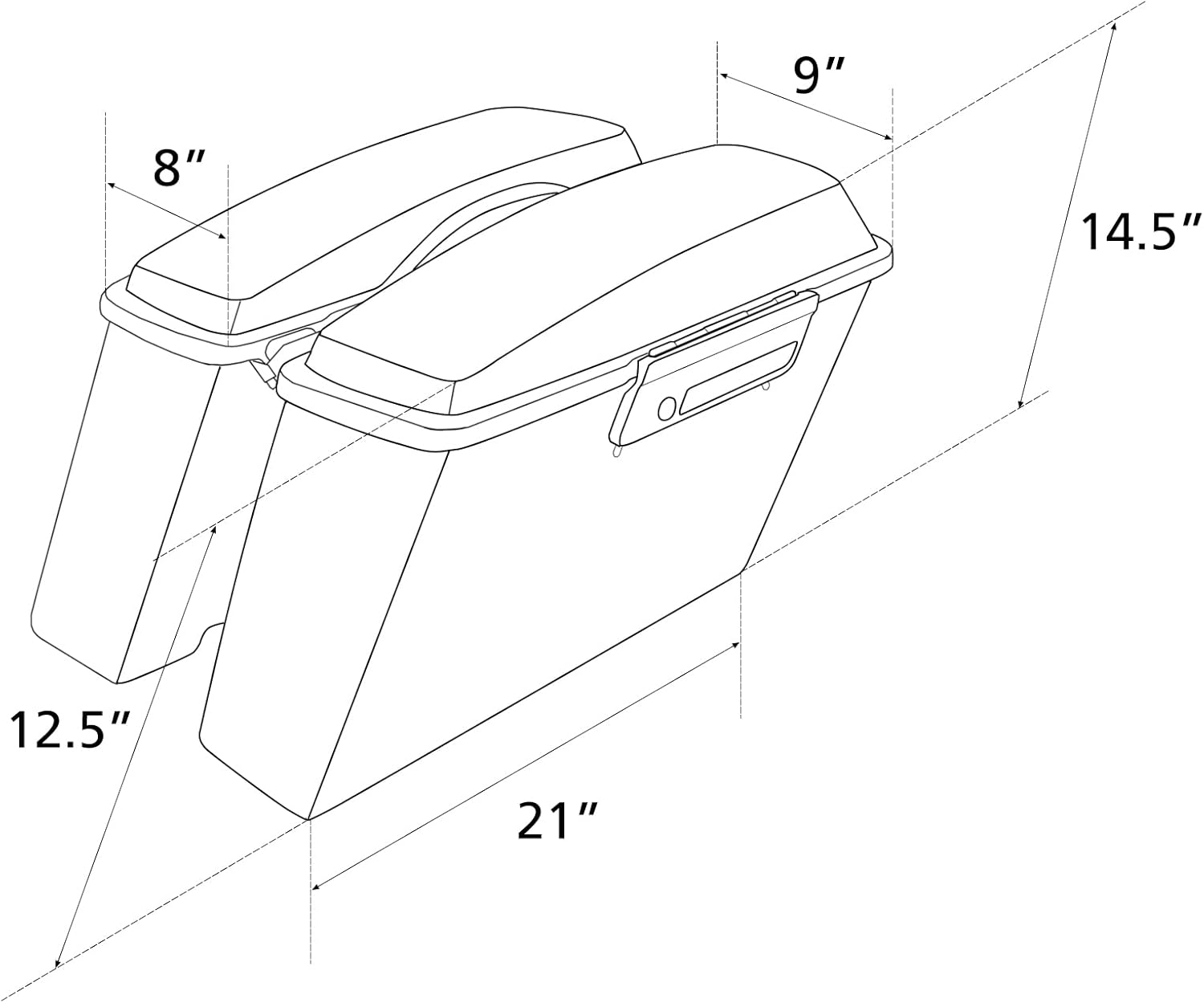 - FEATURE - New style saddlebags for motorcycle, which is not with arc, differs from other bags; Stretched two sides of your motorcycle, help you to carry more things during the long tour; Comes with latches and lock, protect the safety of your stuff