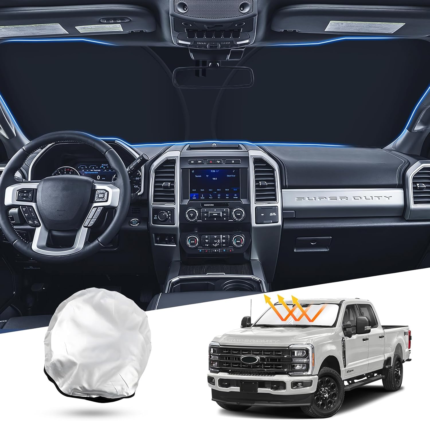 T TGBROS Windshield Sun Shade for Ford Super Duty 2017-2022 F-250 F-350 F-450 Pickup Accessories Foldable Sun Shield Front Window Sunshade Cover Sun Visor Cover Block Heat and Sun Protection