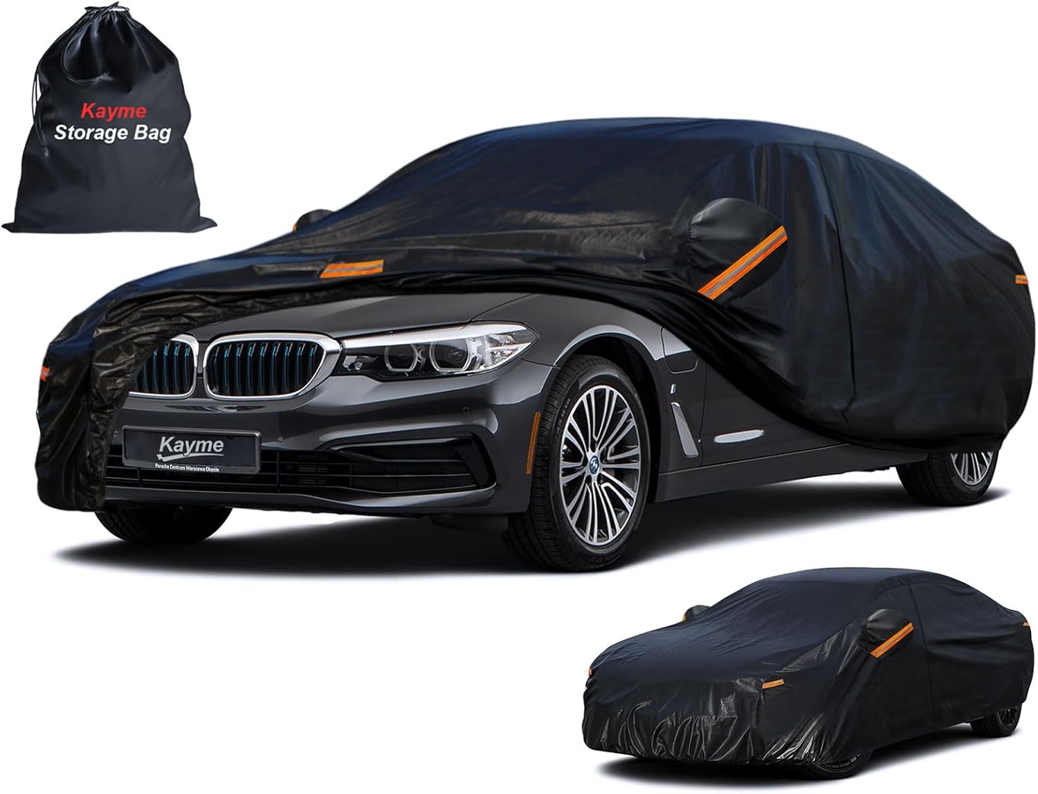 Kayme 7 Layers Heavy Duty Car Cover Waterproof All Weather, Full Exterior Cover Outdoor Snow Sun Uv Protection with Zipper for Automobiles, Universal Fit for Sedan (194-208 inch)