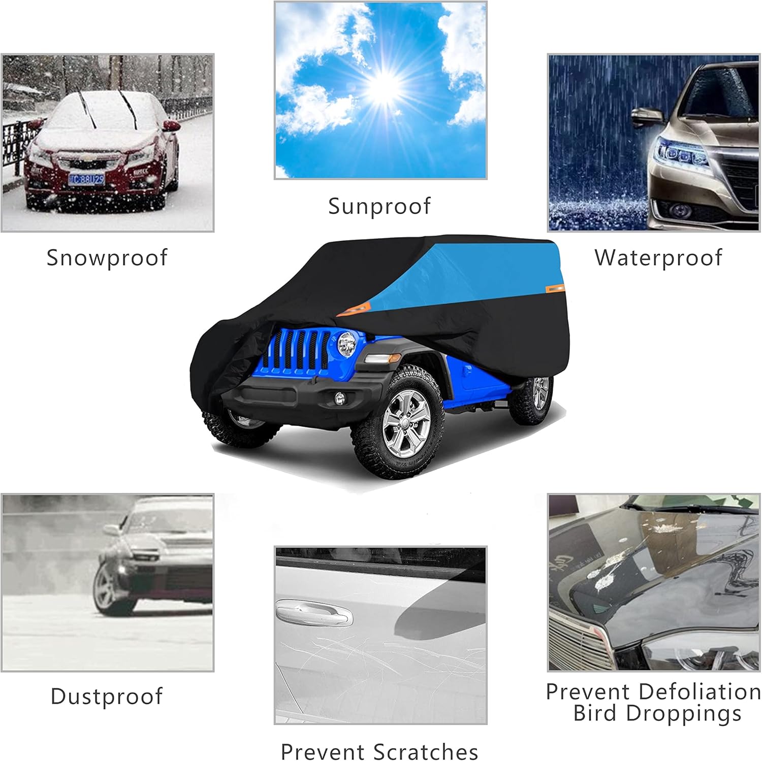 MORNYRAY Compatible with Jeep Wrangler 2 Door, Waterproof Car Cover All Weather Snowproof UV Protection Windproof Outdoor Full car Cover, Universal Fit for (Wrangler 2Door, Blue)