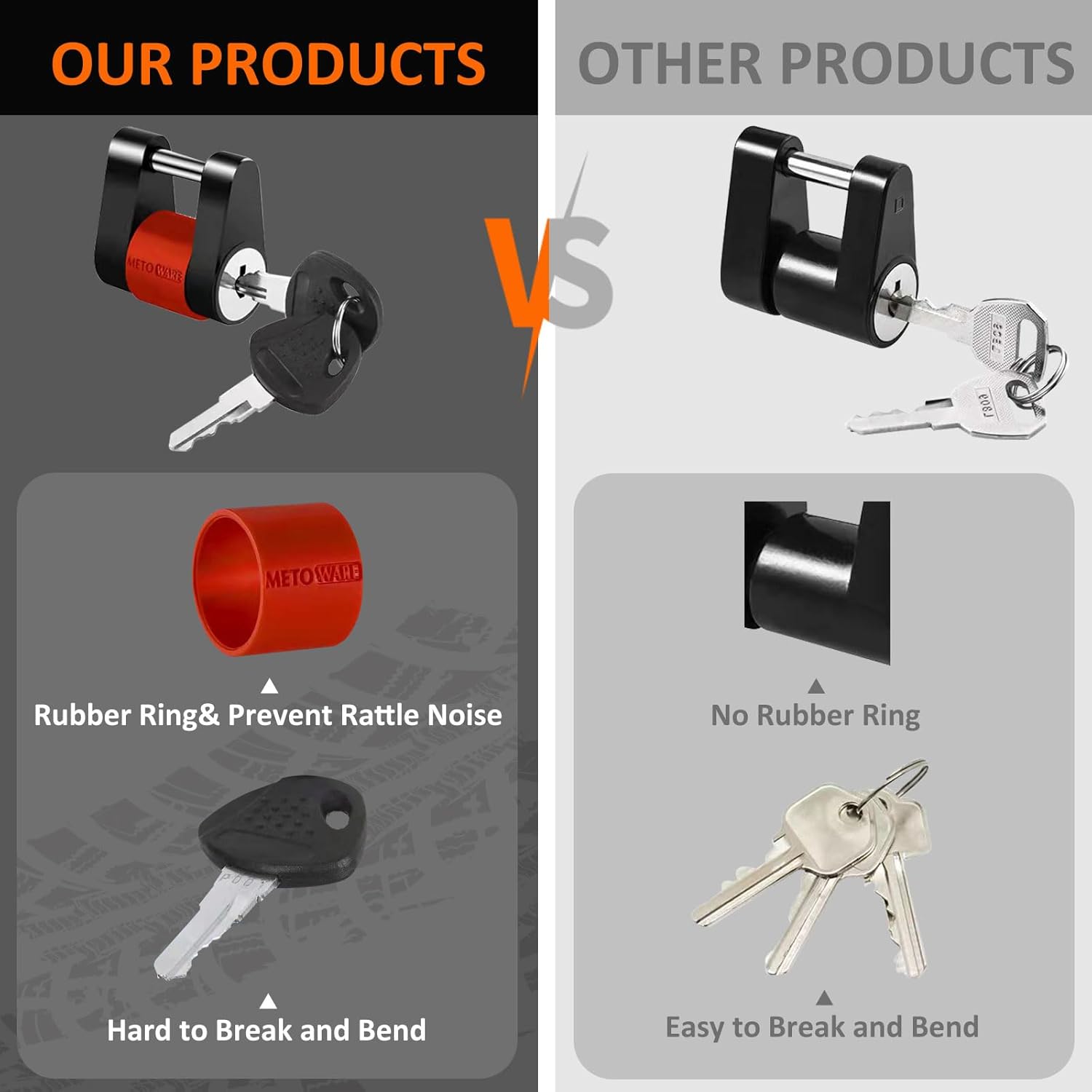 METOWARE Keyed Alike Trailer Coupler Lock, 1/4” Dia, 3/4” Span Heavy-Duty Steel Trailer Tongue Lock for Tow Boat RV Truck Car's Coupler with Anti-Rattle Rubber Rings (2 Pack)
