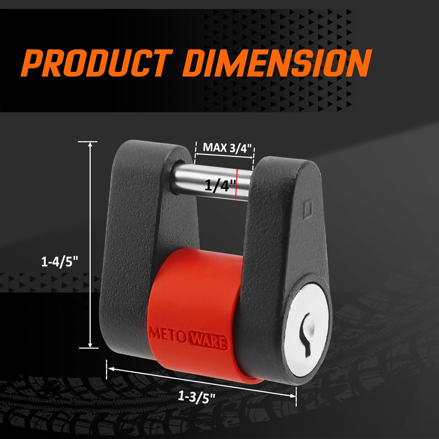 - 【CONVENIENT TO CARRY】- Heavy-duty trailer coupler lock is powerful and mini (1/4” diameter, 3/4” span) -- convenient for you to carry, available to put in your pocket, bag, or vehicle anywhere. The coupler lock comes with 4 keys, so you can keep spare keys in case you need them.
