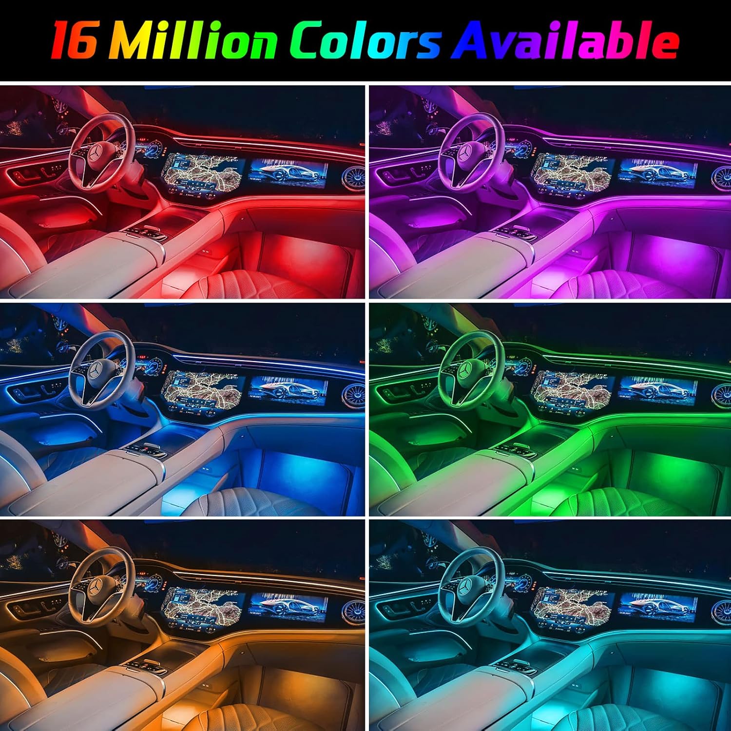 - 【315 inches 2-in-1 Optical Fiber】 Our RGB automotive LED light strips comes with a T-type skirt side so you don't have to spend time threading the fiber optic core into a clear tube. The fiber optic is made of PMMA, safe, non-conductive, waterproof, flexible, with perfect color rendering and long service life.