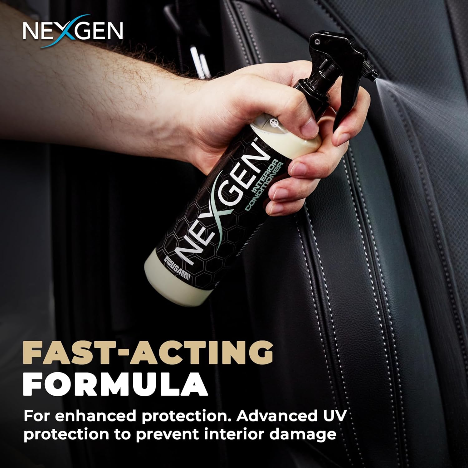 Nexgen Interior Conditioner (16oz) - Non-Greasy, UV-Blocking Formula - Fresh Leather Scent - On-The-Go Car Detailing - Car Cleaning Supplies - for Car Seats, Dashboards, Door Panels, & More