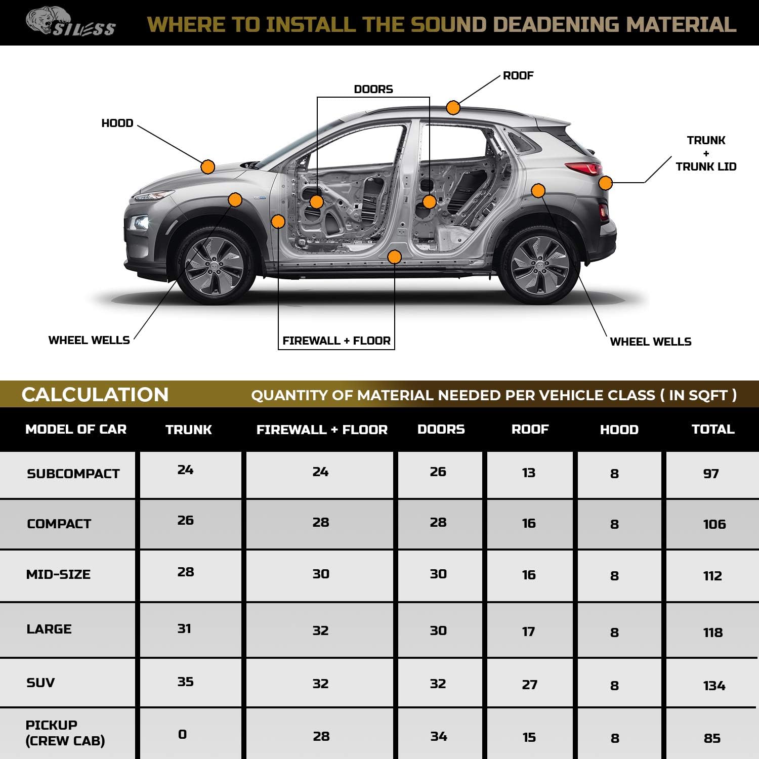 - Heat Blocker and Sound Deadener: Effectively blocks 98% of radiant heat transfer. Siless LinerPRO is a very versatile insulation material with excellent thermal barrier properties that will block engine, exhaust, & summer heat, ensure your vehicle stays cooler in the summer and warmer in the winter, making your ride more pleasant!