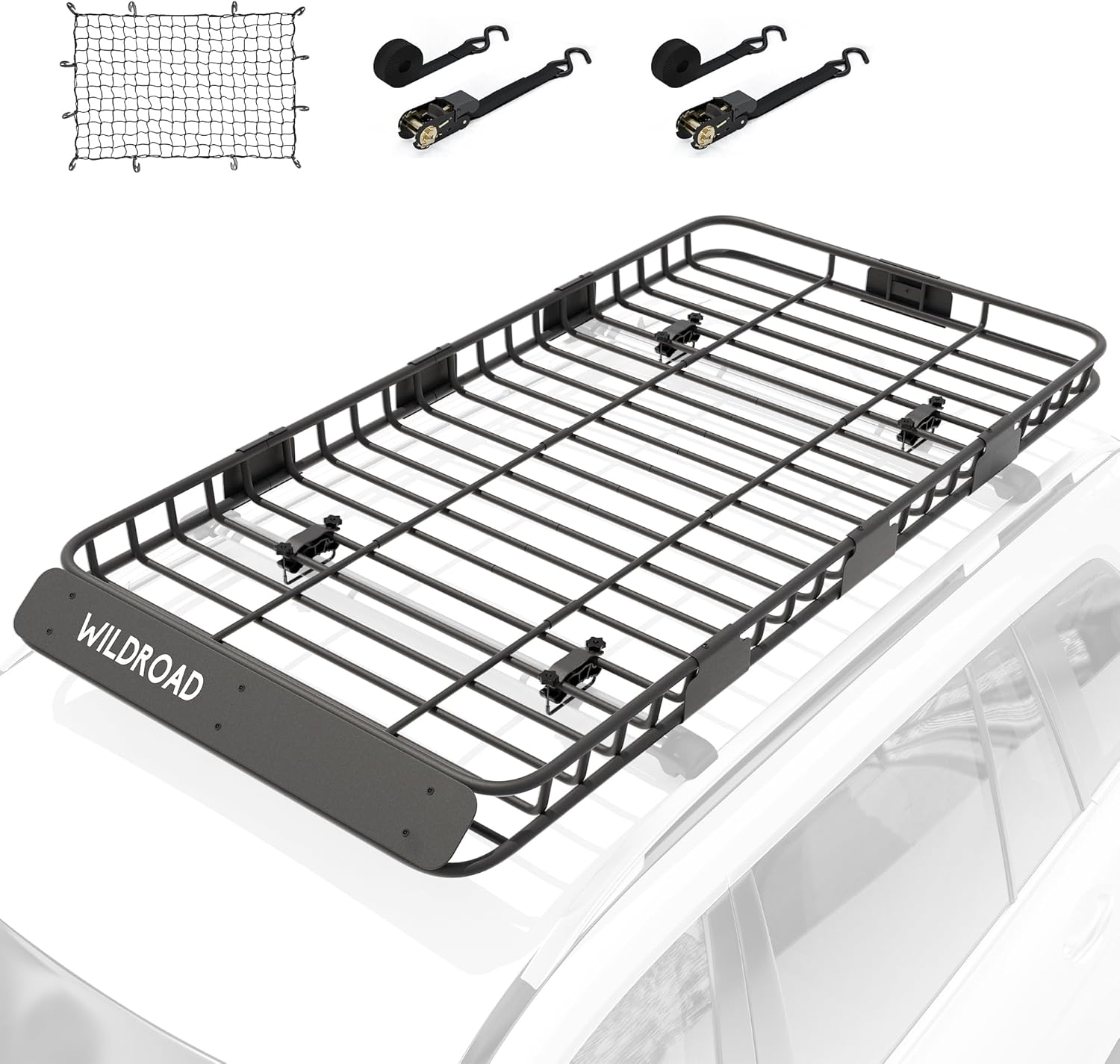 - HEAVY DUTY: Wildroad roof basket made of solid and premium steel pipe can hold up to 150 lbs cargo. Durable black powder coating prevent it from all weather conditions. Highest standard craftsmanship in the industry ensure its quality, each screw matches welding frame accurately.