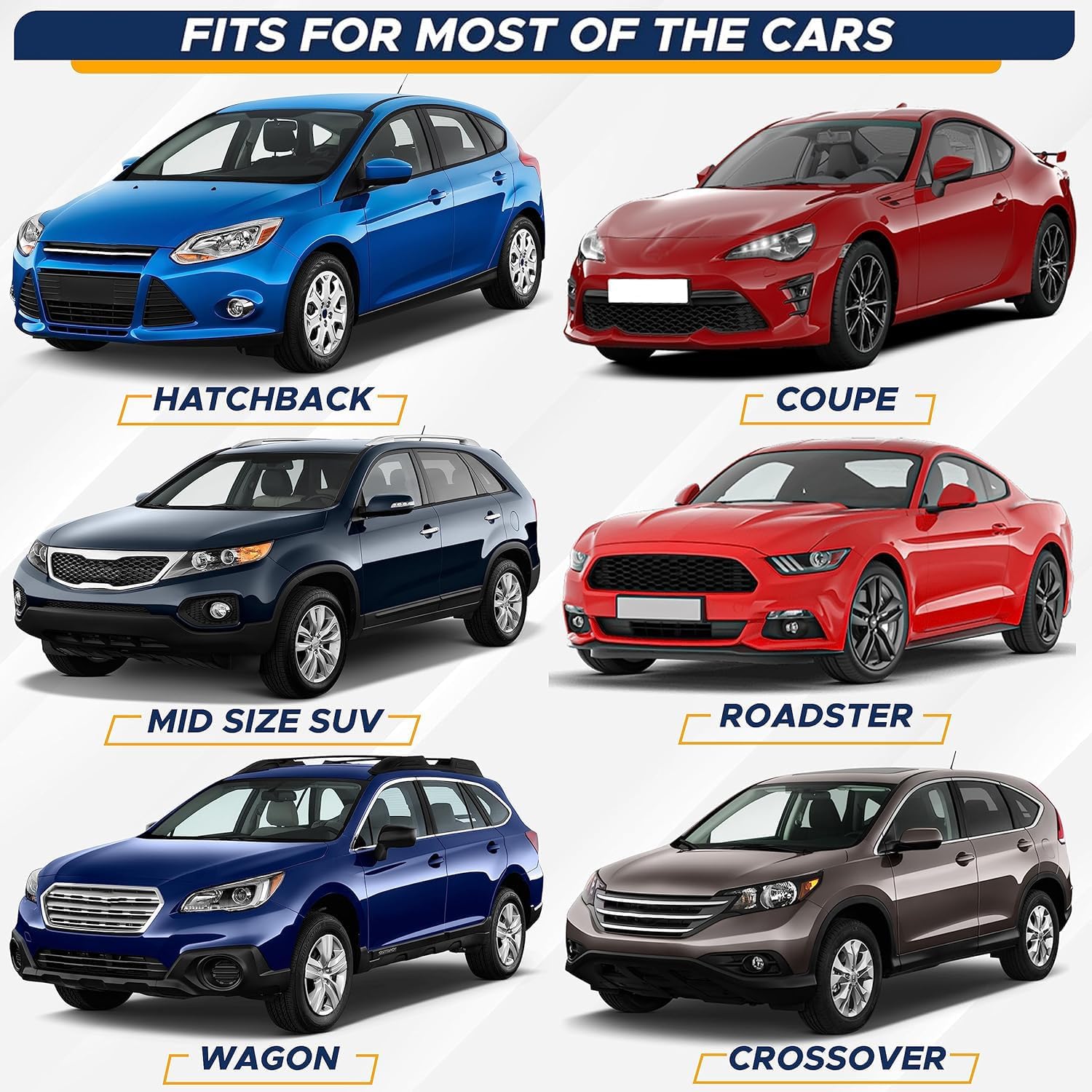- Compact, Space-Saving Design: Measuring 58 x 28 inches, this sunshade is perfect for hatchbacks, coupes, roadsters, wagons, crossovers, and mid-size SUVs. Its accordion-style design with a built-in buckle strap makes it easy to fold, store, and carry—ideal for minimal space usage.