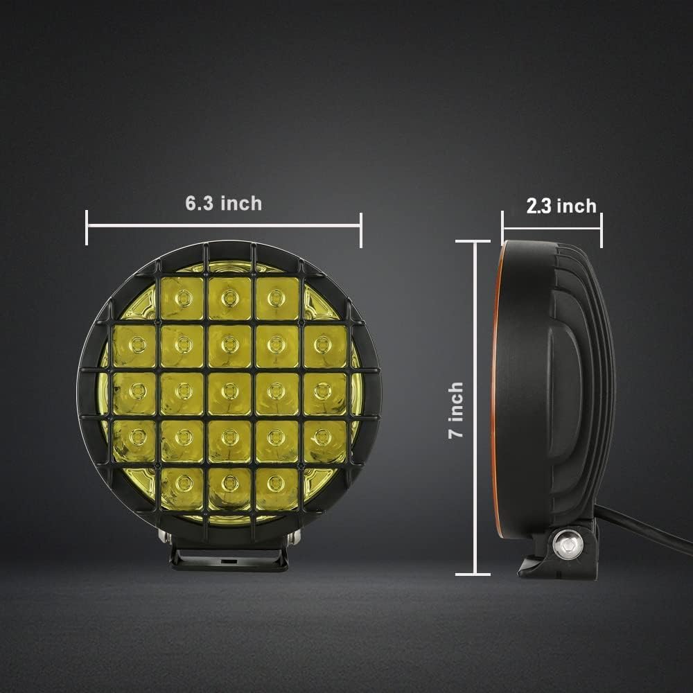 - 【Efficient lighting effect】Each light cup is combined with spot and flood beam design. Spot beam travels quite far out and has a nice width. The amber offroad lights emits super bright amber light. Round led off road lights give safe view in most of bad weathers like rainy days, foggy days and snowy days, make driving safer.