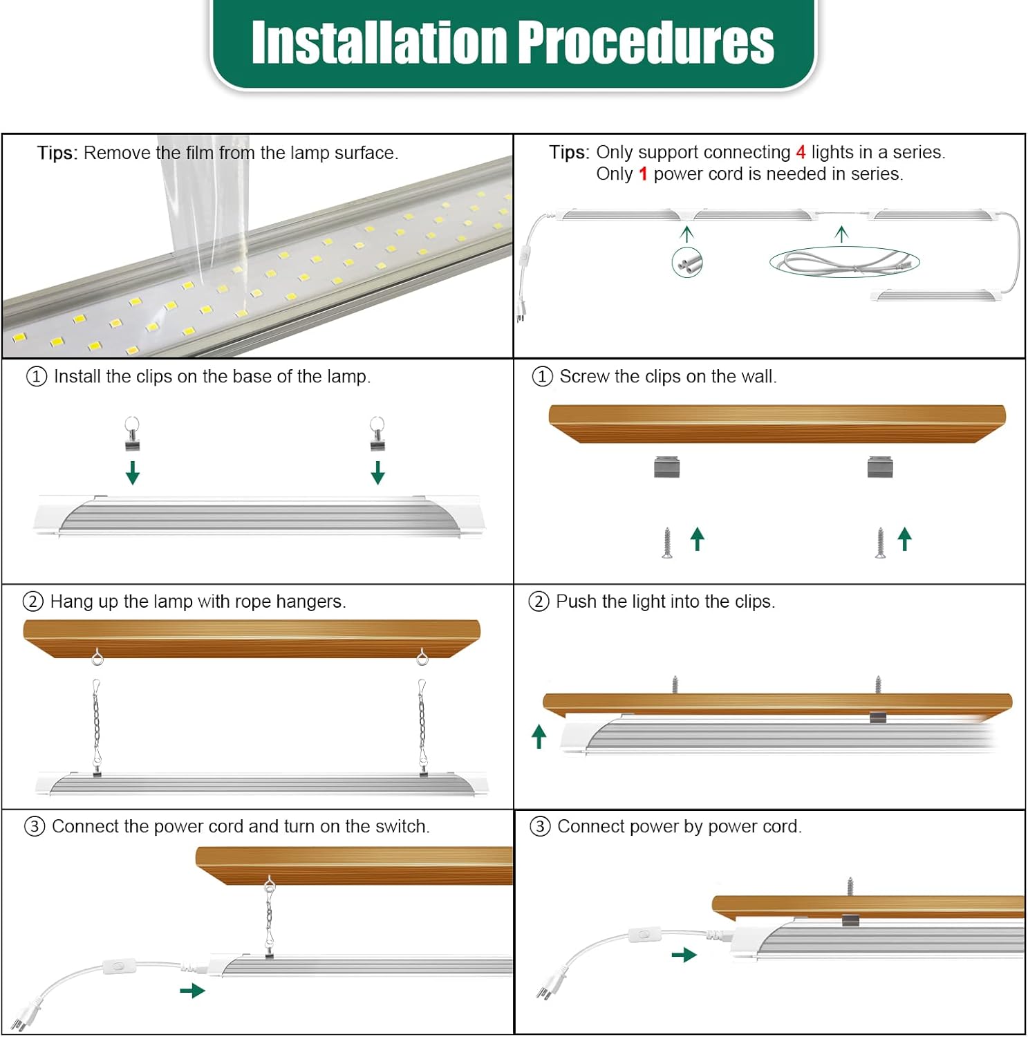 - [75% Energy Saving] - Each led light has 60w low power consumption, save up to 75% on your electricity bill by replacing fluorescent tubes. 5000K daylight white offers the best lighting experience for garage and general area lighting. No buzzing ballasts, no flickering, no mercury or hazardous materials, no UV or IR Radiation.
