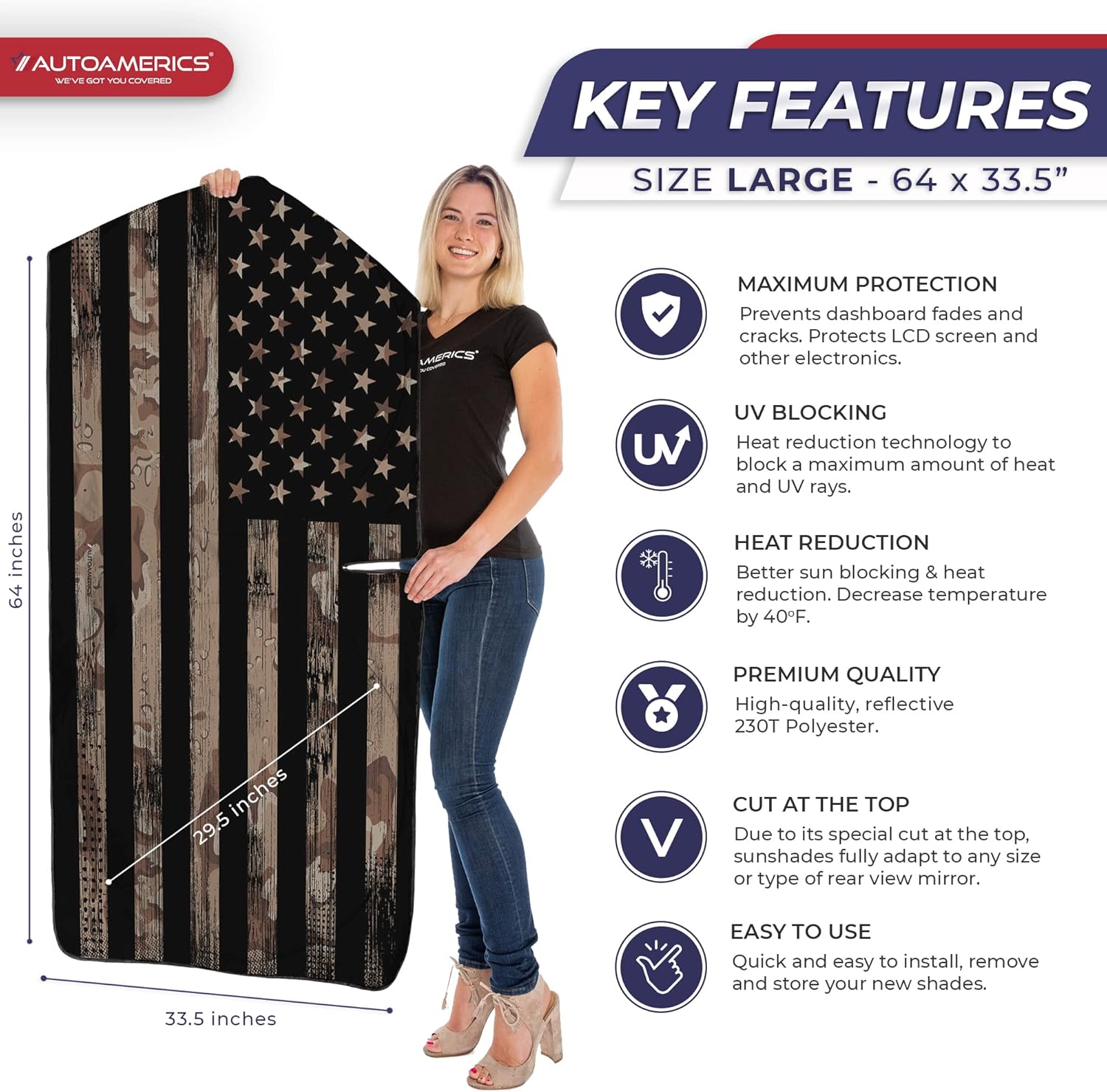 Autoamerics 1-Piece Windshield Sun Shade Brown Camo American Flag USA Design - Foldable Car Front Window Sunshade for Most Sedans SUV Truck - Blocks Max UV Rays and Keeps Your Vehicle Cool - Large