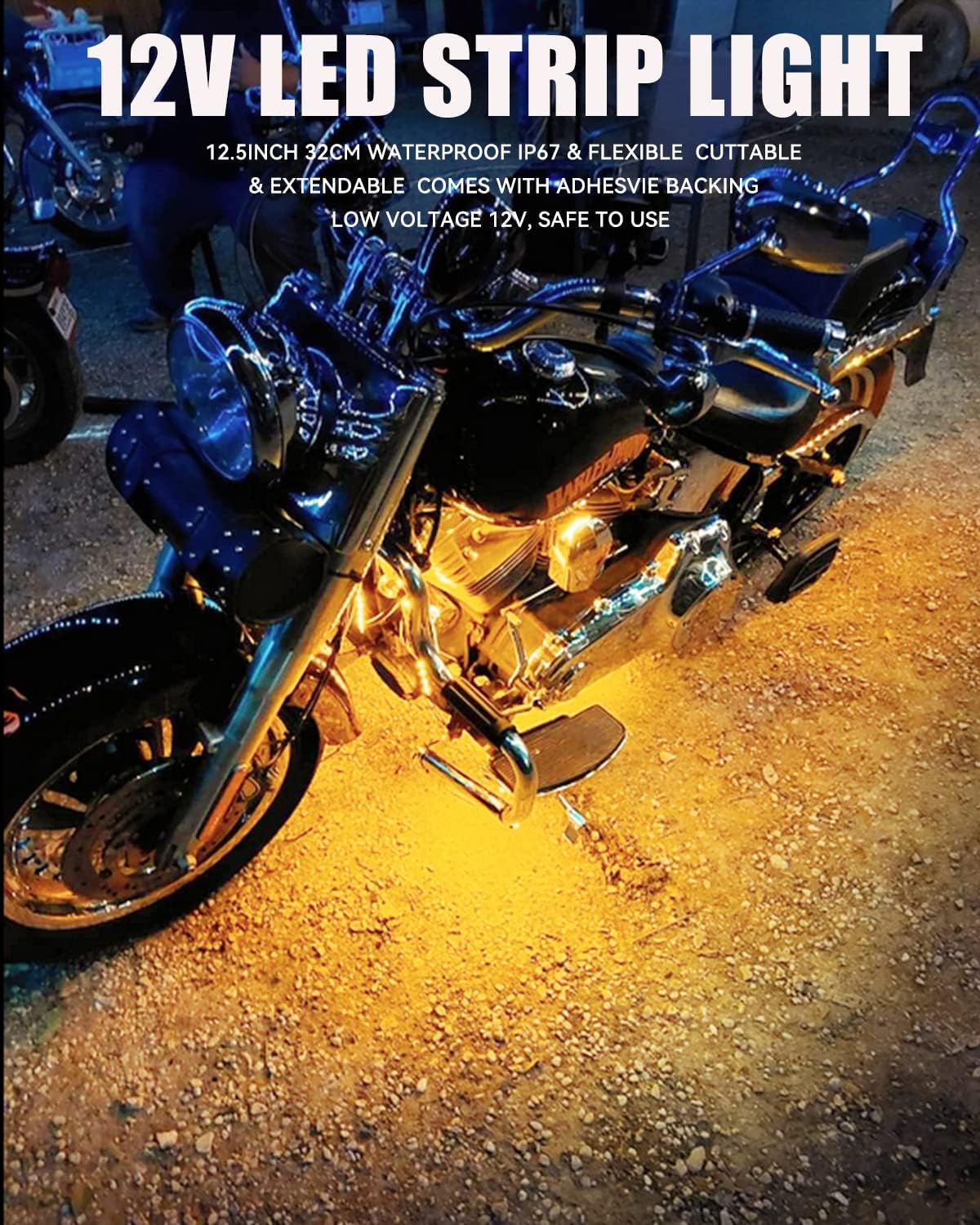 - 【Widly Application】--- 12v amber led strip widly used for golf cart underglow motorcycles automotive car truck Cargo Trailer Camper-Vans underbody under the hood Interior footwell & exterior front grille. marine boat navigation lights bow lights, boat interior lights, fishing night light, cockpit light and boat stern lights, atmosphere light