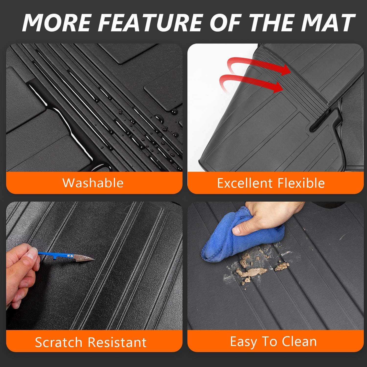 - Premium Material: Compatible with 2020-2025 Toyota Highlander cargo liner is made of high quality TPE material. It is scratch-resistant, flexible and has no bad smell. It can last a long time. Even if you fold it hard, it will not be easily spoiled. Our mat can withstand all kinds of extreme weather, such as heavy rain or snowstorm days, etc. You can clean the mats with water and a rag.