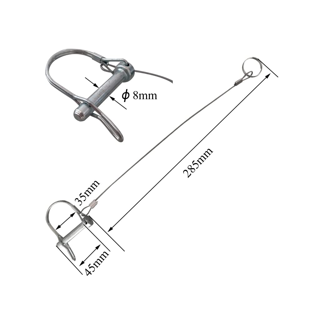 - VERSATILE. The 5/16-Inch( 8mm) diameter and 1-3/4-Inch( 45mm) length of this trailer pin make it highly versatile to fit a wide variety of trailer couplers. It can also be used for a trailer jack wheel, pintle hook and more