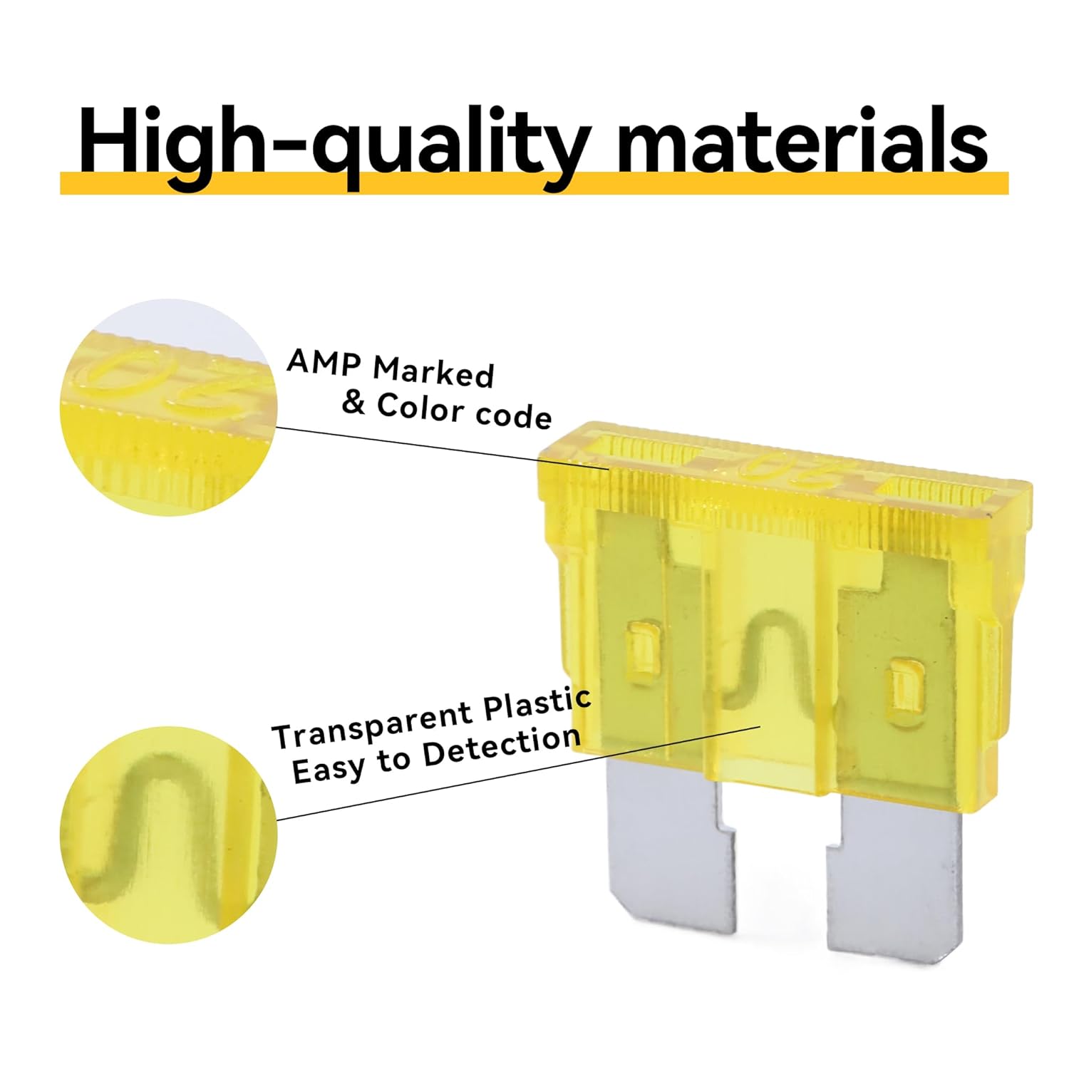 - CONVENIENT DETECTION - The plug-in blade fuses are made from transparent PES with zinc alloy inserts and transparent housings for viewing the fuse link status and quick detection of a blown fuse.