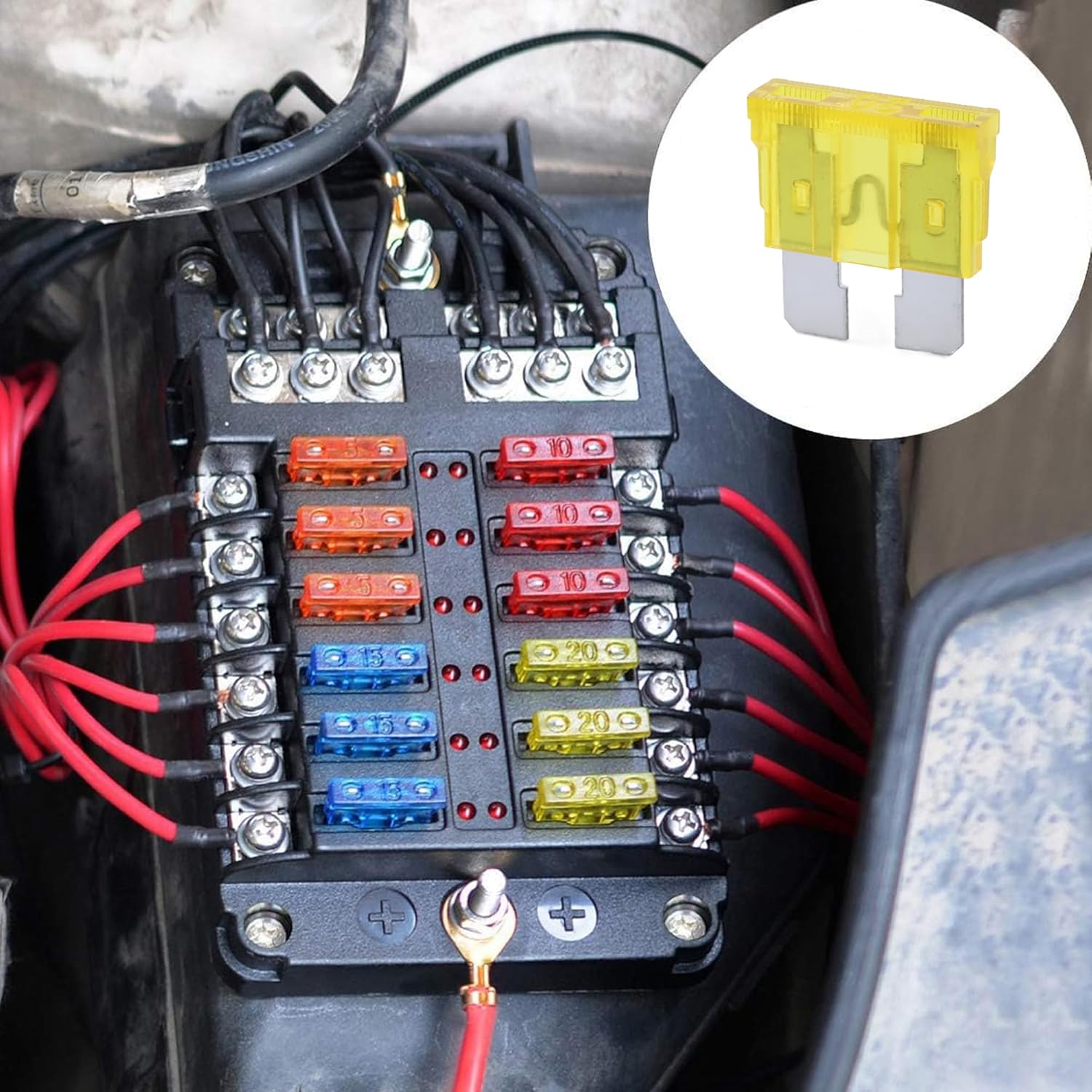 - DURABLE - Terminals are constructed from tin-plated zinc for corrosion resistance and enhanced conductivity. Fuses made of premium materials, fast and precise fusing current to protect your vehicles and electrical devices from a short circuit and overload.