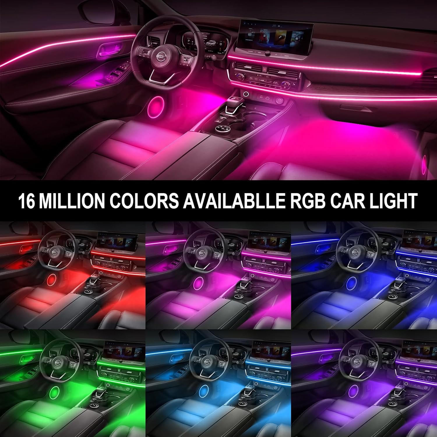 - 【2-in-1 Acrylic Fiber Optic Light Strip】The RGB car LED light adopts 2-in-1 optical fiber (LED light strip + acrylic optical fiber), which is plug and play, and the light is more uniform and softer than other fiber optic lights that only rely on one light source.