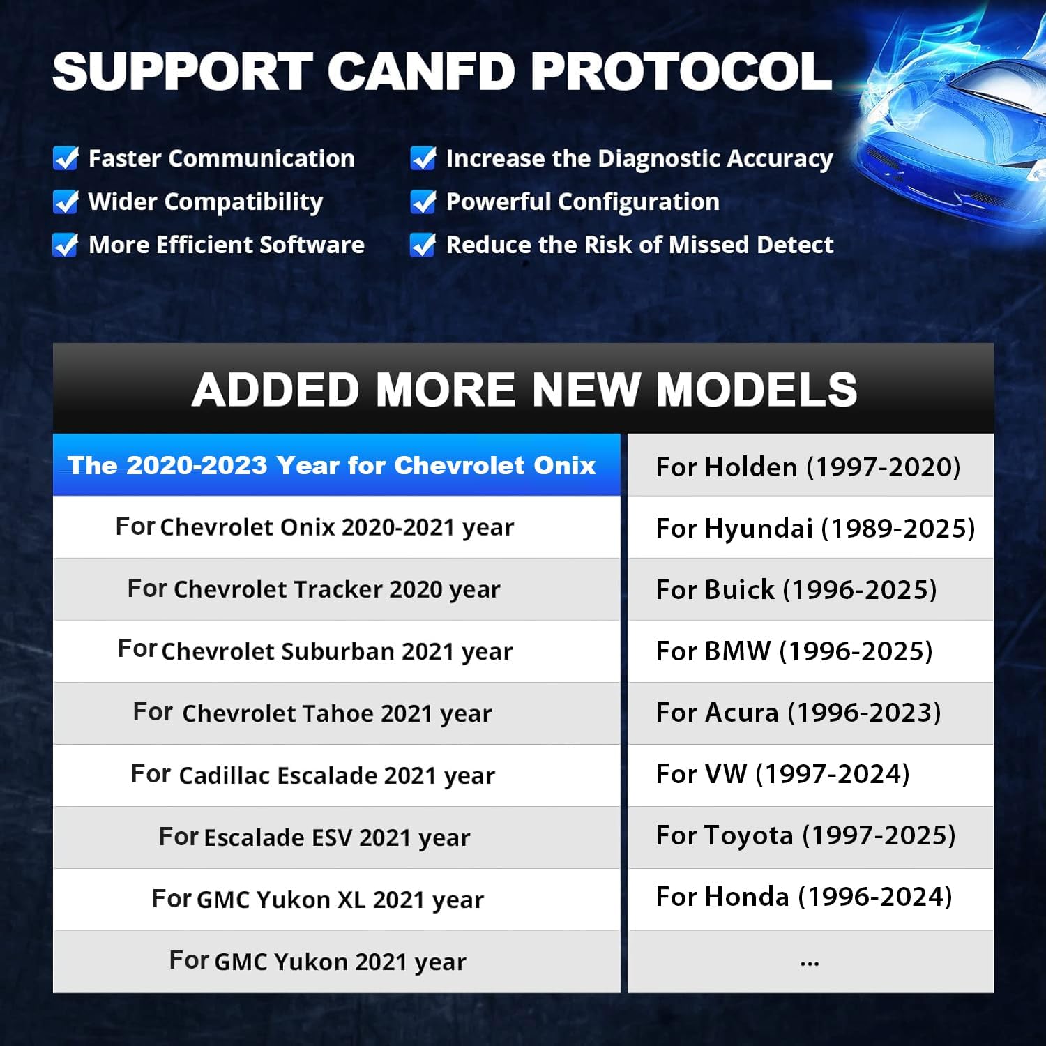 - 【OE-Level Full Systems Car Scanner with Added CAN FD Protocol】 Upgrade of Thinkdiag, Thinkdiag2 is a bluetooth diagnostic tool can diagnose Full System such as ECM, ABS, SRS, TCM, EPB, TPMS, SAS, A/C, BMS, etc. Thinkdiag2 can read/clear fault codes, read real-time data, read control module information,etc. As the only diagnostic scanner in this price range that supports the CAN-FD protocol, it suits for the latest GM(2019-) , saving $100 to buy a CAN FD adapter, reducing the risk of undetected errors to enhancing the user experience