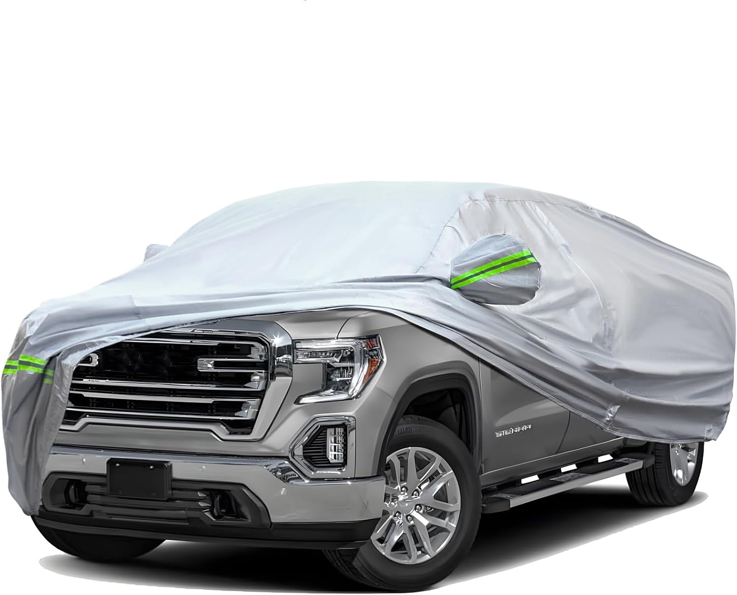 TUCAREST 6-Layers Heavy Outdoor Pickup Full Car Cover Hard Shell Zipper Design Waterproof All Weather Weatherproof UV Sun Protection Snow Dust Storm Resistant with Straps (Fit for UP to 213"-237")