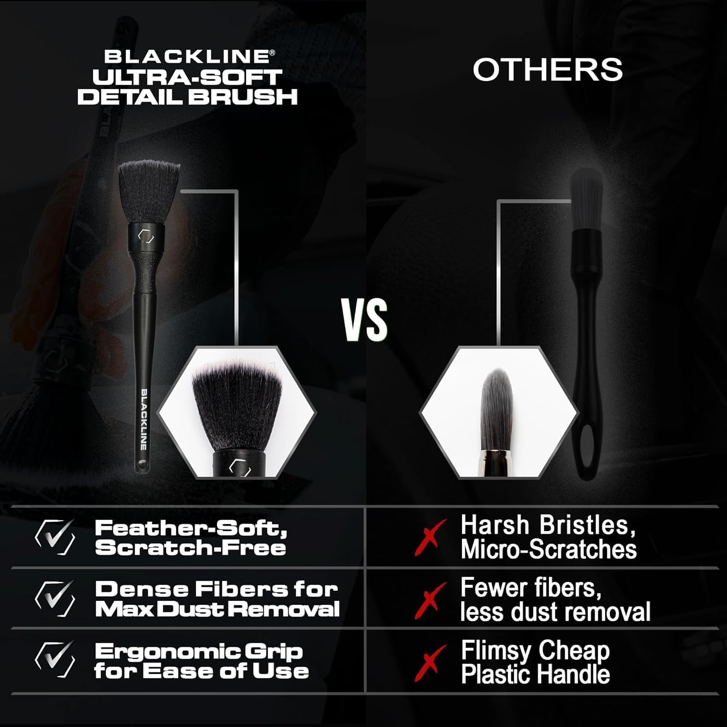 - Amazing Car Tool: The Blackline Ultra Soft Detailing Brush can be used for various car cleaning needs. Try it on the leather, plastics, and screens on the interior of your car!