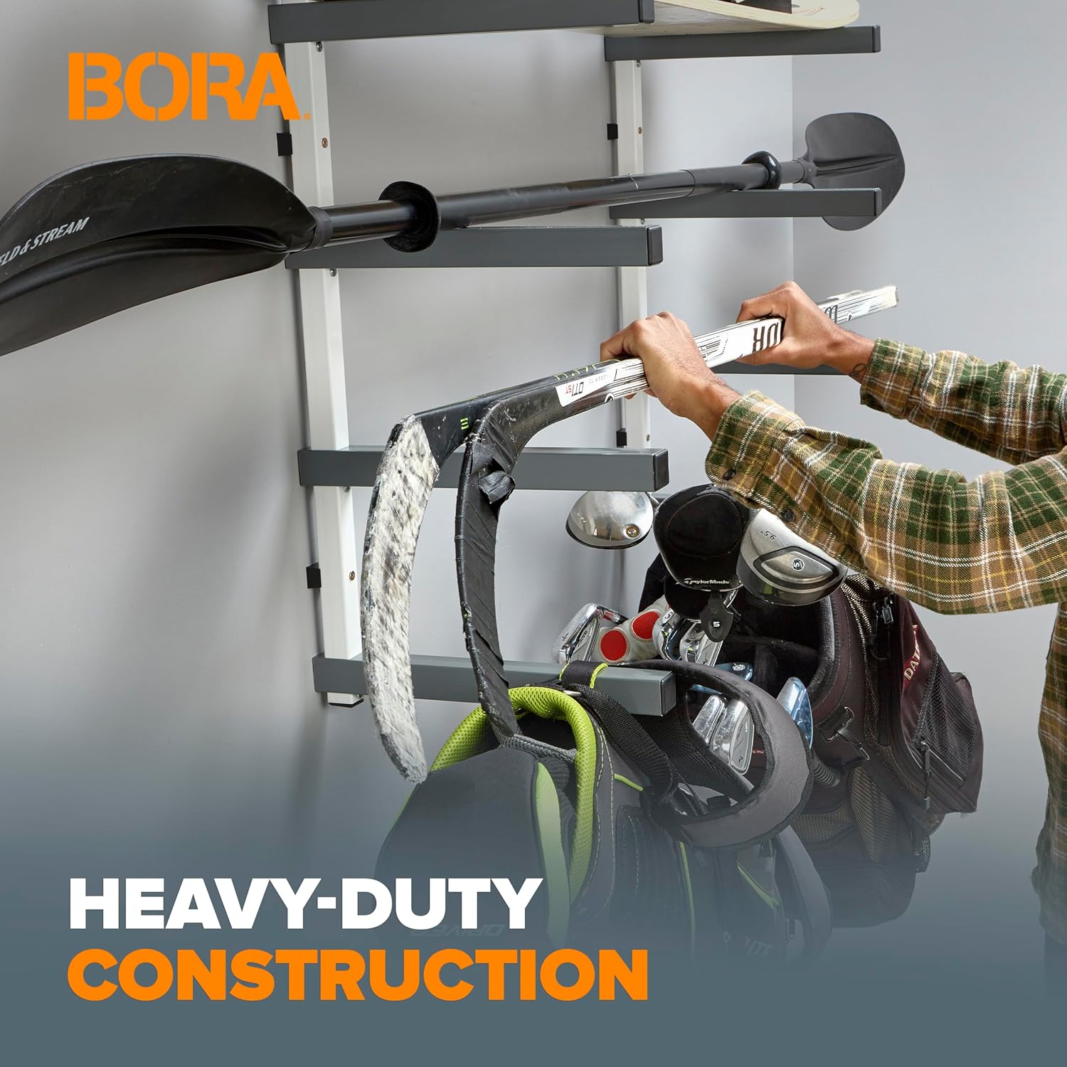 - Heavy-duty Construction: Our BORA lumber rack is made from powder-coated, 1-inch steel tubes, giving you a sturdy and reliable wall organizer. Simply drill the brackets into the wall, adjust the spacing to your preference, and your garage wall rack is ready for use!