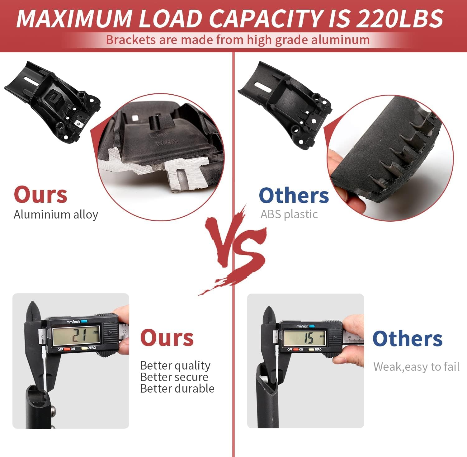 - 【Exceed OEM parts in securest and strongest】Die-casting aluminum brackets and upgraded heavy duty 2.1mm thickness aluminum bar which add to extra load capacity and durable, better than most in the market. Metal mechanism lock system offers 100% secure for anti-theft and durable. Max load capacity is 220lbs (100kg), do not worry about the heavy luggage.