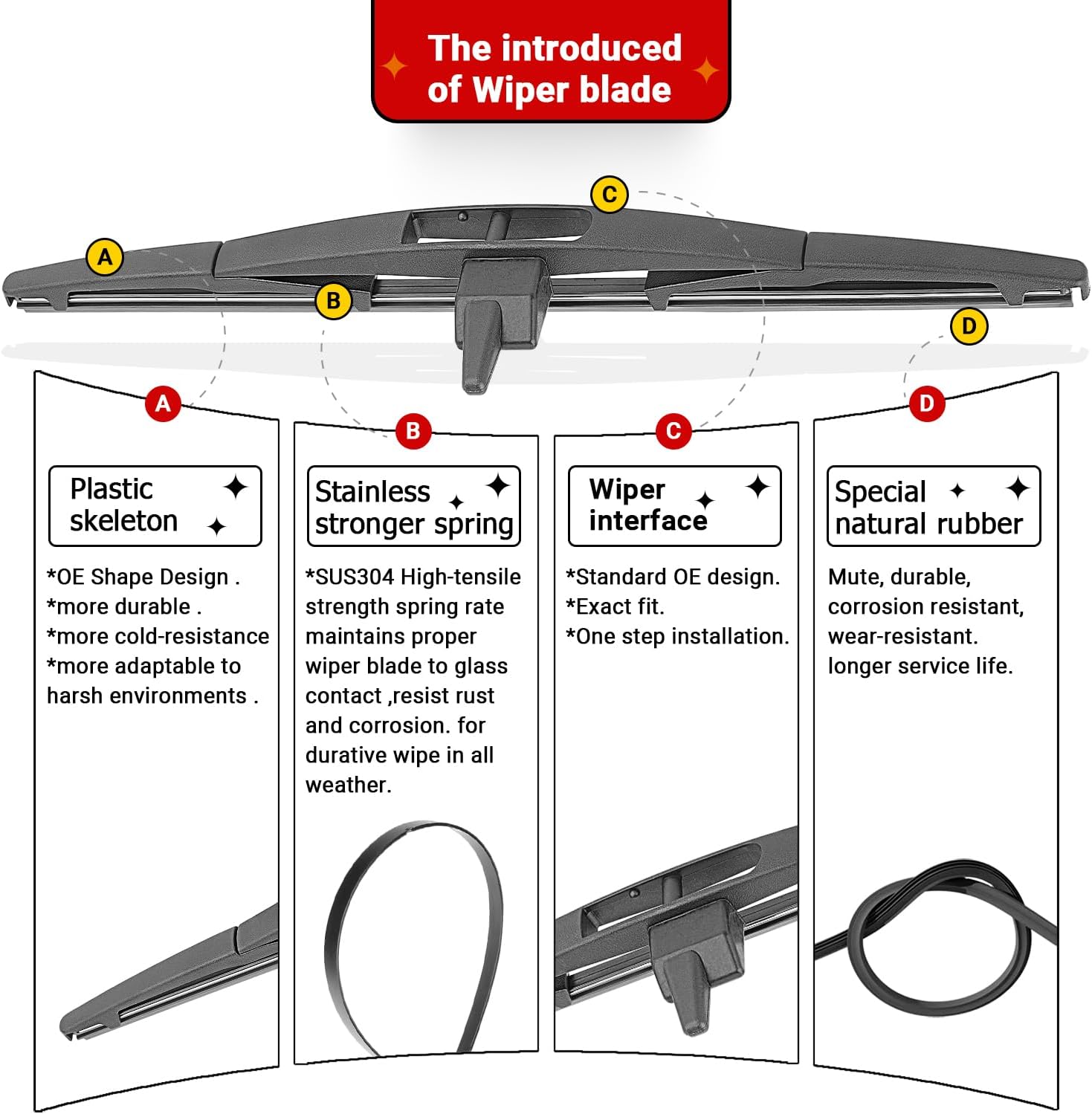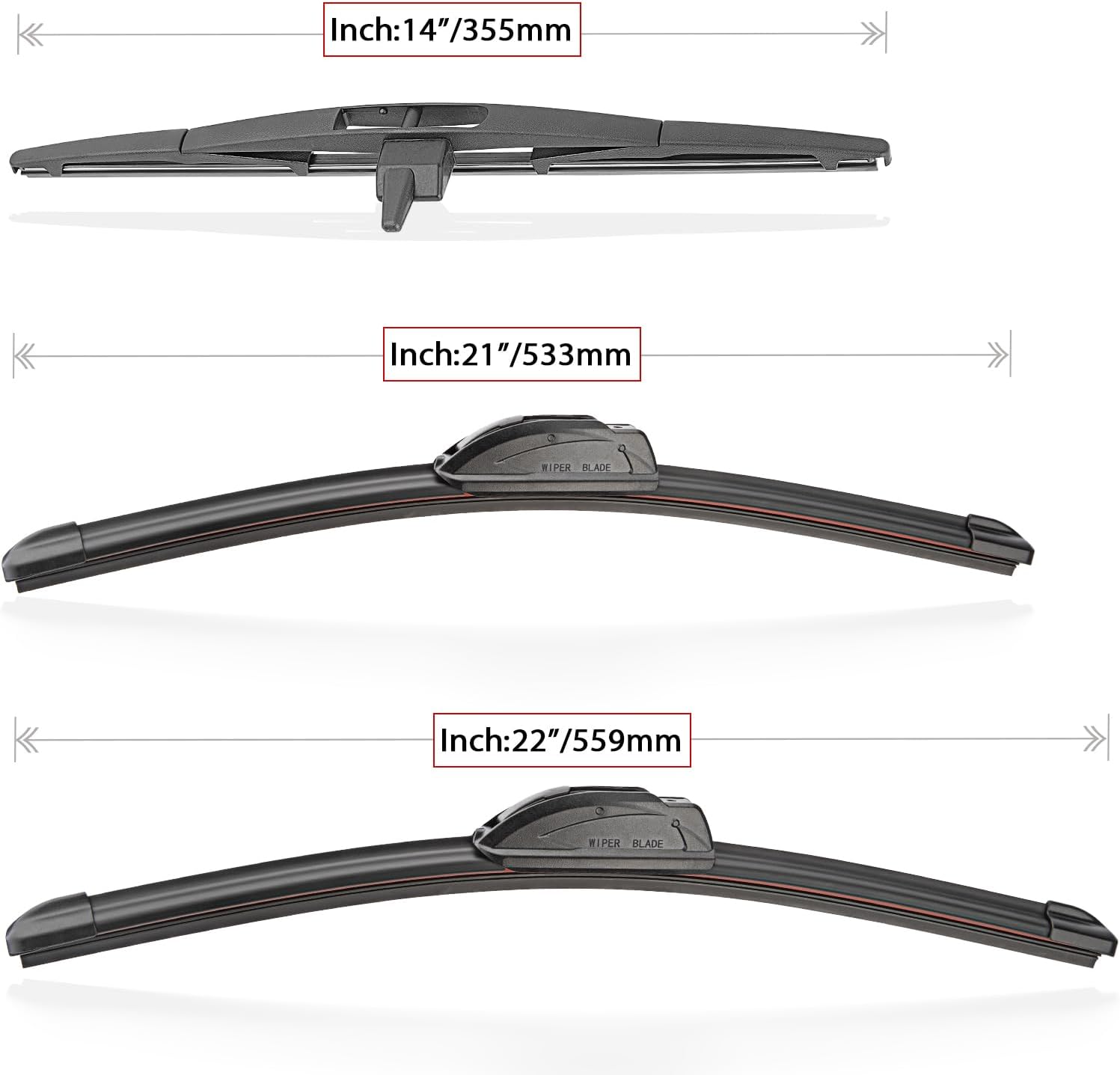 - {WIPER PERFORMANCE}: Natural rubber material making sure the wiping is the best, quiet wiping without judder or squeaking, resistant and a long service life.