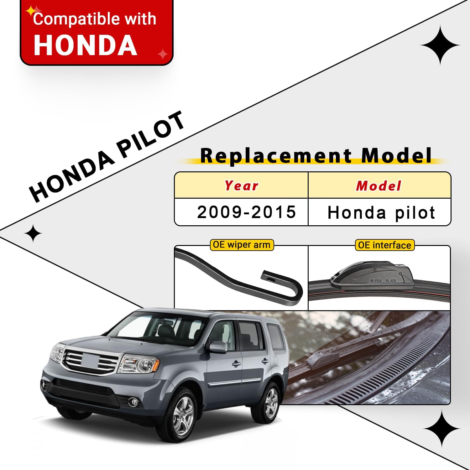 - {FITMENT}: Replacement for 2009 2010 2011 2012 2013 2014 2015 Honda Pilot 22inch + 21inch front with 14inch back windshield wiper blades.